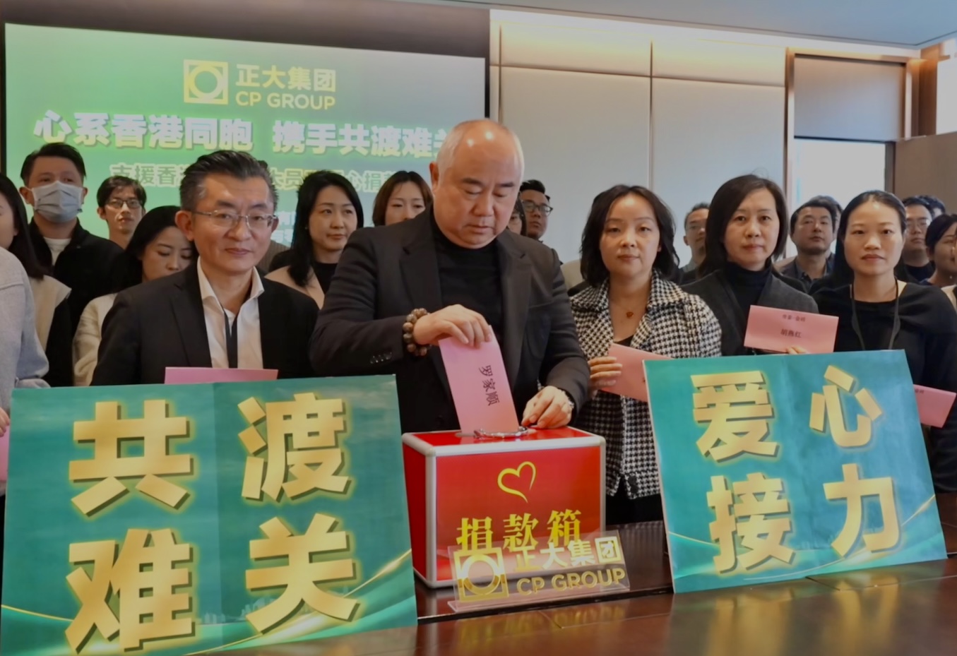 中国香港大埔宏福苑火灾造成重大人员伤亡和损失,各界迅速响应发起捐款倡议。12月5日,正大集团旗下上海帝泰发展有限公司、正大卜蜂食品(上海)有限公司、上海易初莲花连锁超市有限公司、正大乐享影视有限公司、上海帝泰众创空间管理有限公司倡议员工及合作伙伴爱心捐款,筹集善款共计人民币68,701.50元,款项已通过上海香港联会全数捐赠至上海市华侨事业发展基金会账户之“上港联慈善专项基金”,该专项基金用于香港火灾救助与灾后重建工作。