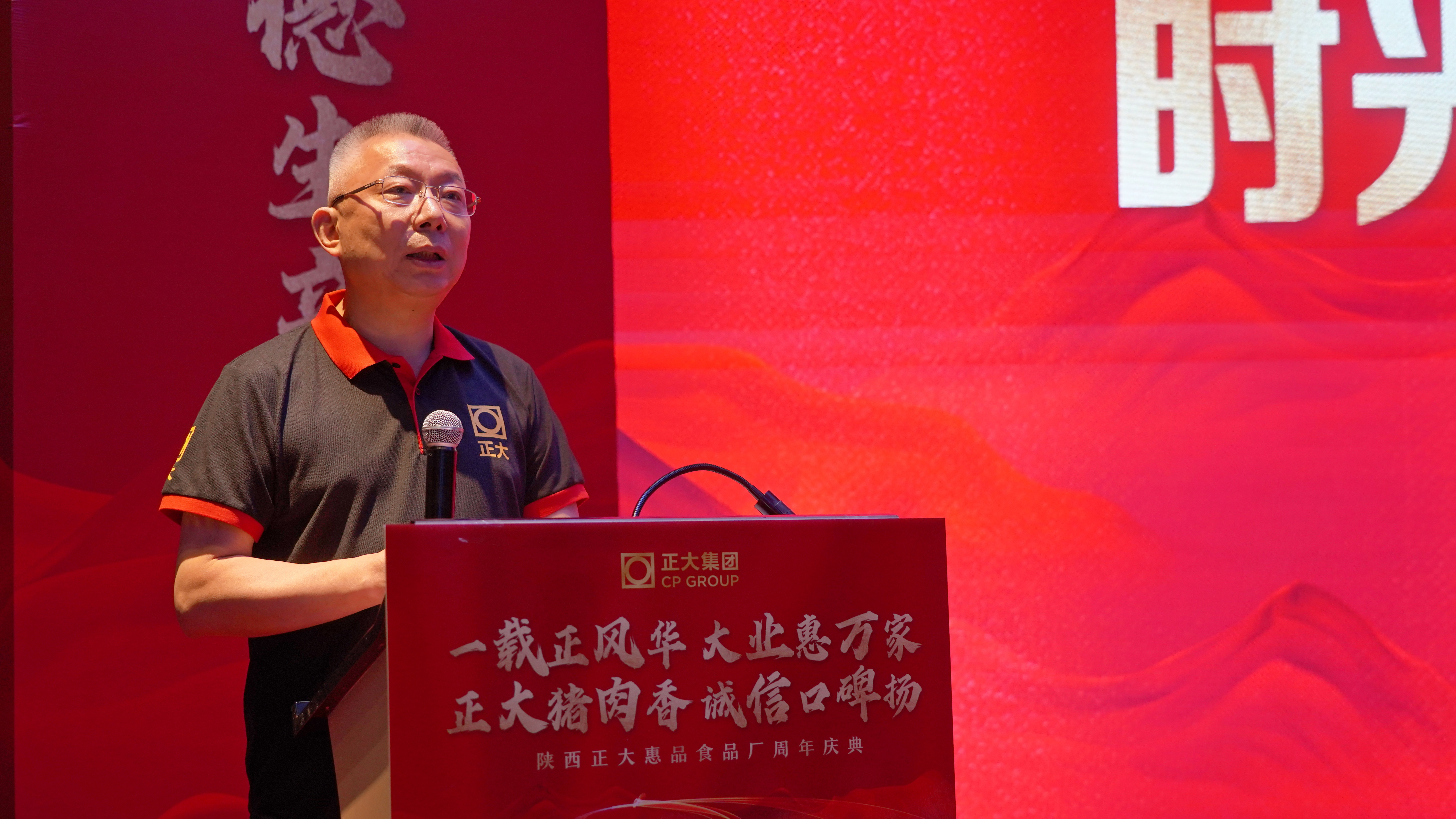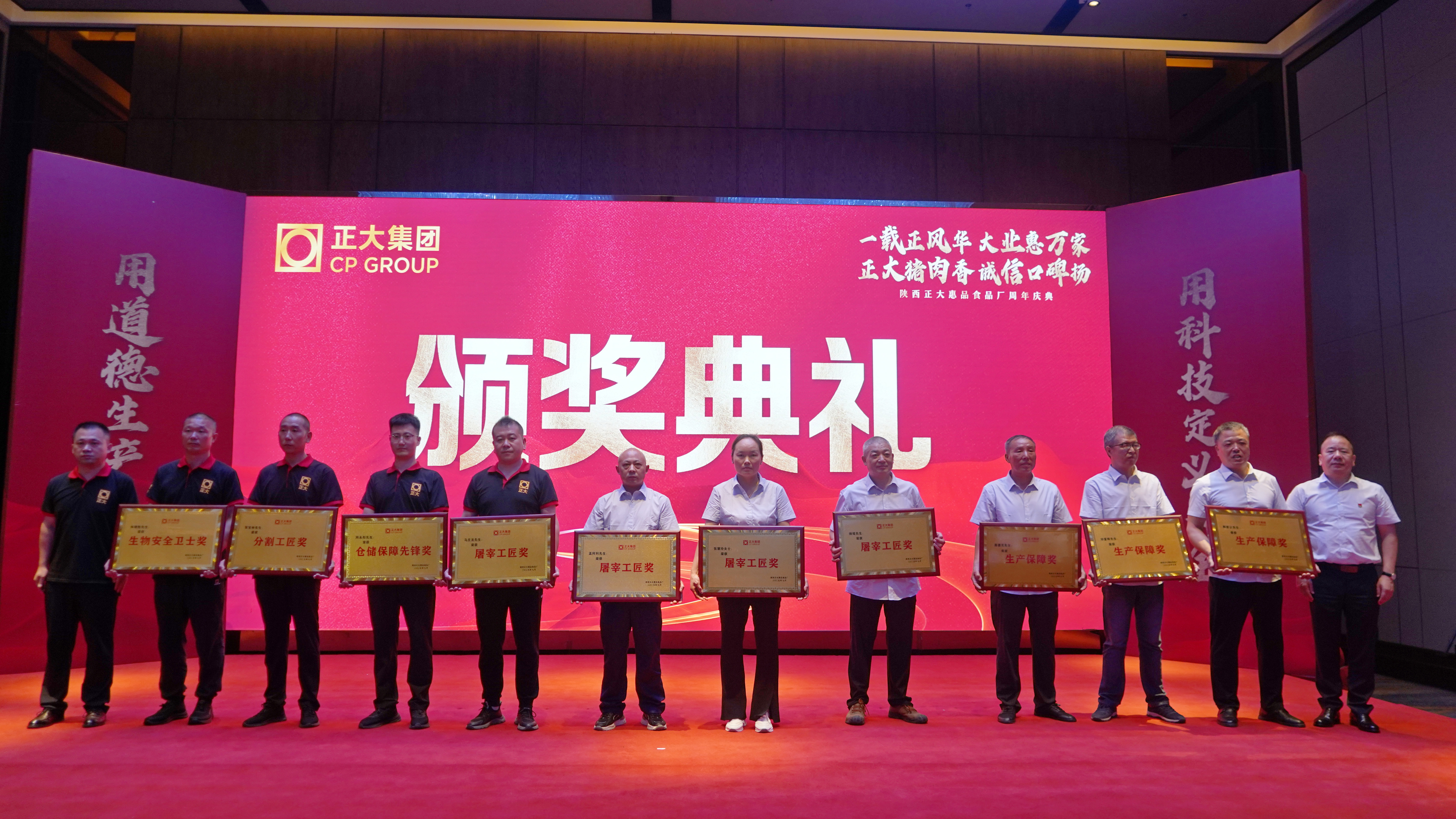 7月1日,在举国欢庆中国共产党成立104周年的光辉时刻,陕西正大惠品食品厂也迎来了意义非凡的一周岁生日。一场以“一载正风华,大业惠万家;正大猪肉香,诚信口碑扬”为主题的周年庆典盛大举行。政府领导、行业协会代表、正大集团陕西区高层、核心合作伙伴、全体员工及各界嘉宾200余人齐聚一堂,在庄重与热烈的氛围中,共同回顾奋斗征程,擘画发展蓝图,致敬时代机遇。