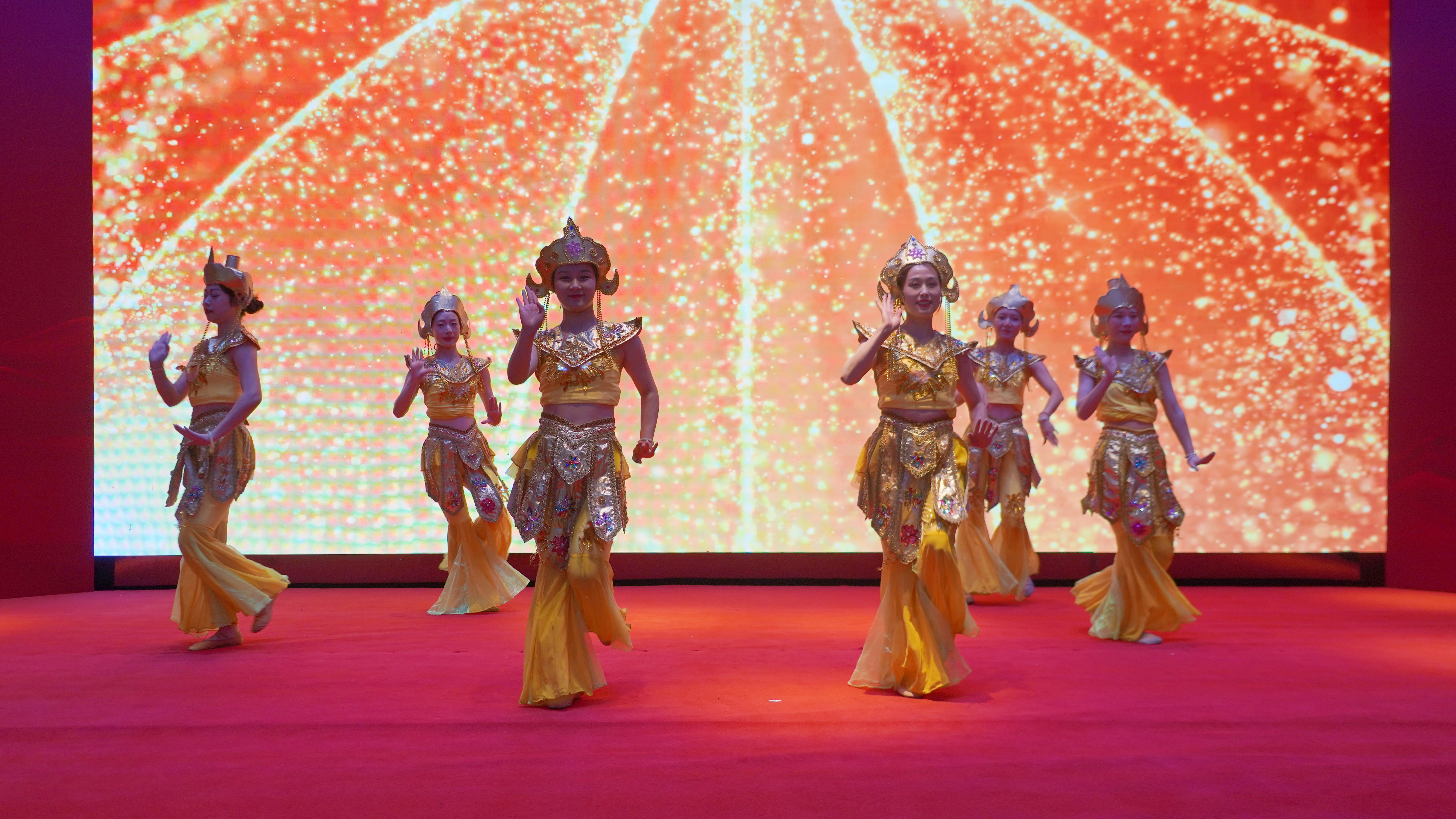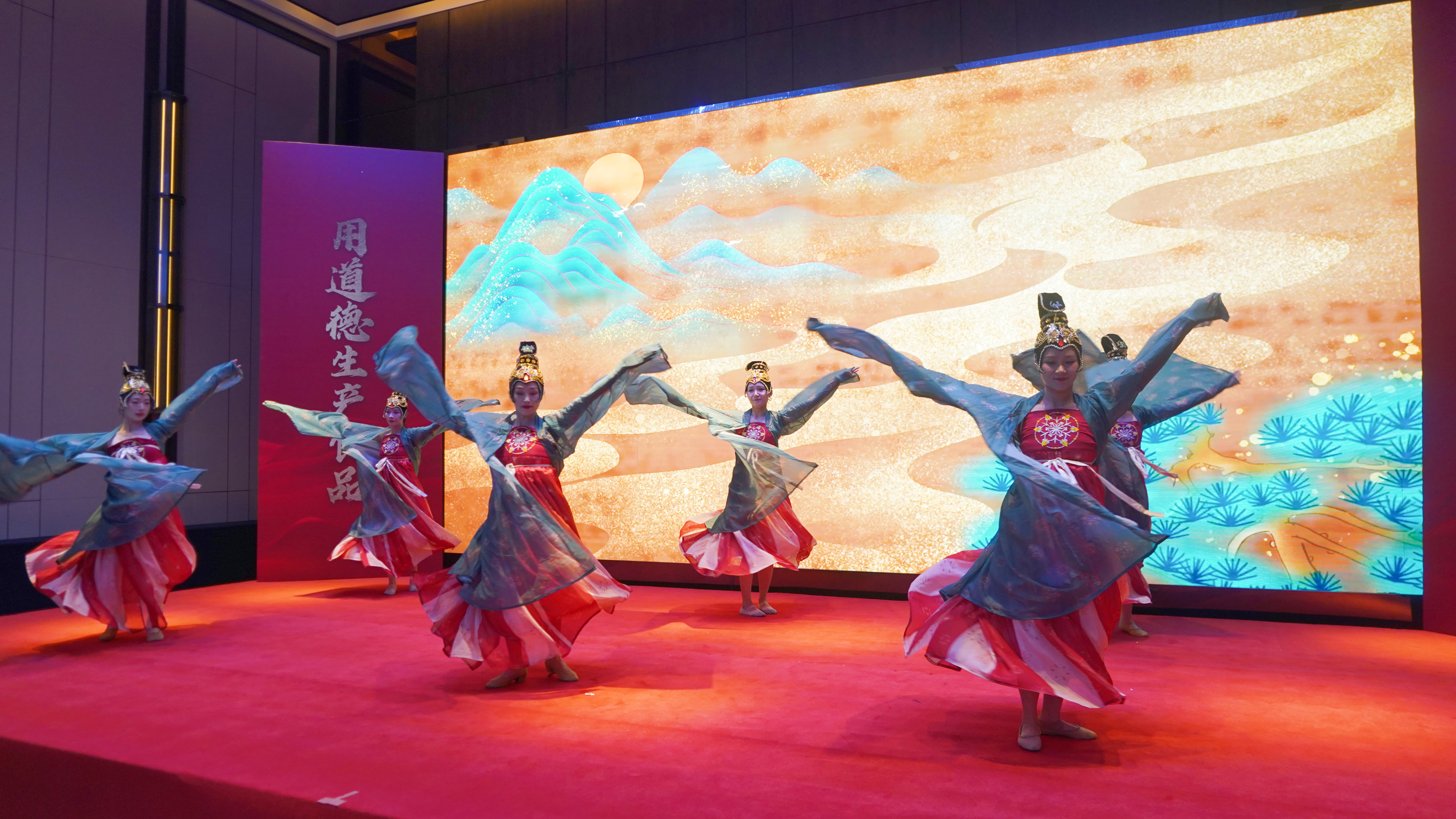 在共享晚宴佳肴的同时,庆典精心奉上了一场融汇中外的视听盛宴。充满异域风情的泰国传统舞蹈,舞者们身着金线刺绣的纱笼,婀娜的舞姿仿佛将台下观众带到了湄南河畔,生动诠释着正大集团“利国、利民、利企业”的三利原则在中泰友谊桥梁上的枝繁叶茂。技艺精湛的川剧变脸表演,瞬息万变的脸谱令人叹为观止,象征着惠品在市场风云中勇于变革、敢于创新的魄力。唯美典雅的《霓裳羽衣舞》,舞者身披霓虹羽衣,舞步翩跹如风似云,不仅展现了中华传统艺术的瑰丽,更象征着惠品人对卓越品质和精致生活的不懈追求。最后,惠品销售团队以一首激昂豪迈的《众人划桨开大船》唱响了团结奋进的强音,吹响了面向未来的冲锋号角。