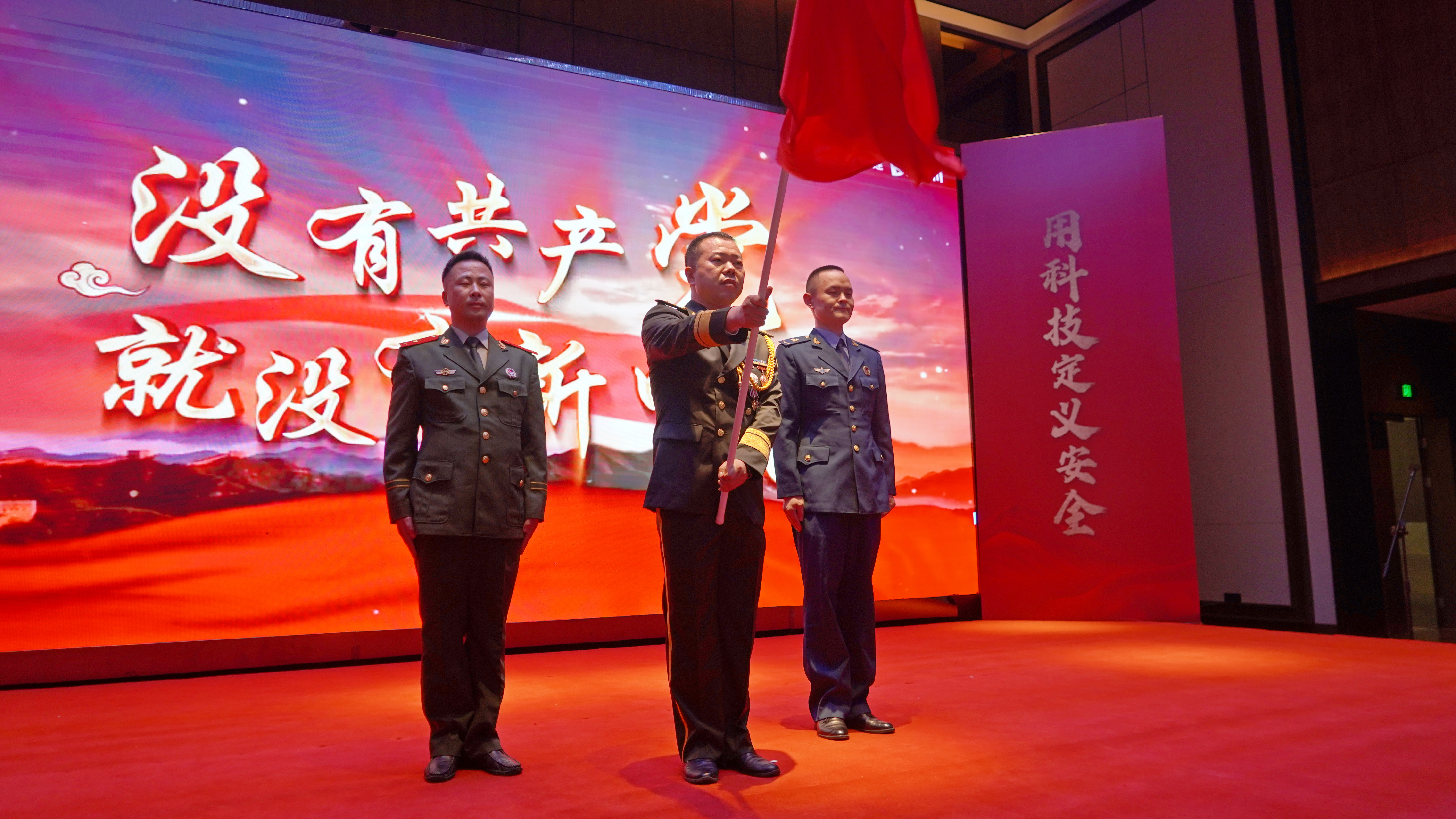 庆典在激昂的合诵中拉开序幕。全场嘉宾肃立,齐唱《没有共产党就没有新中国》。