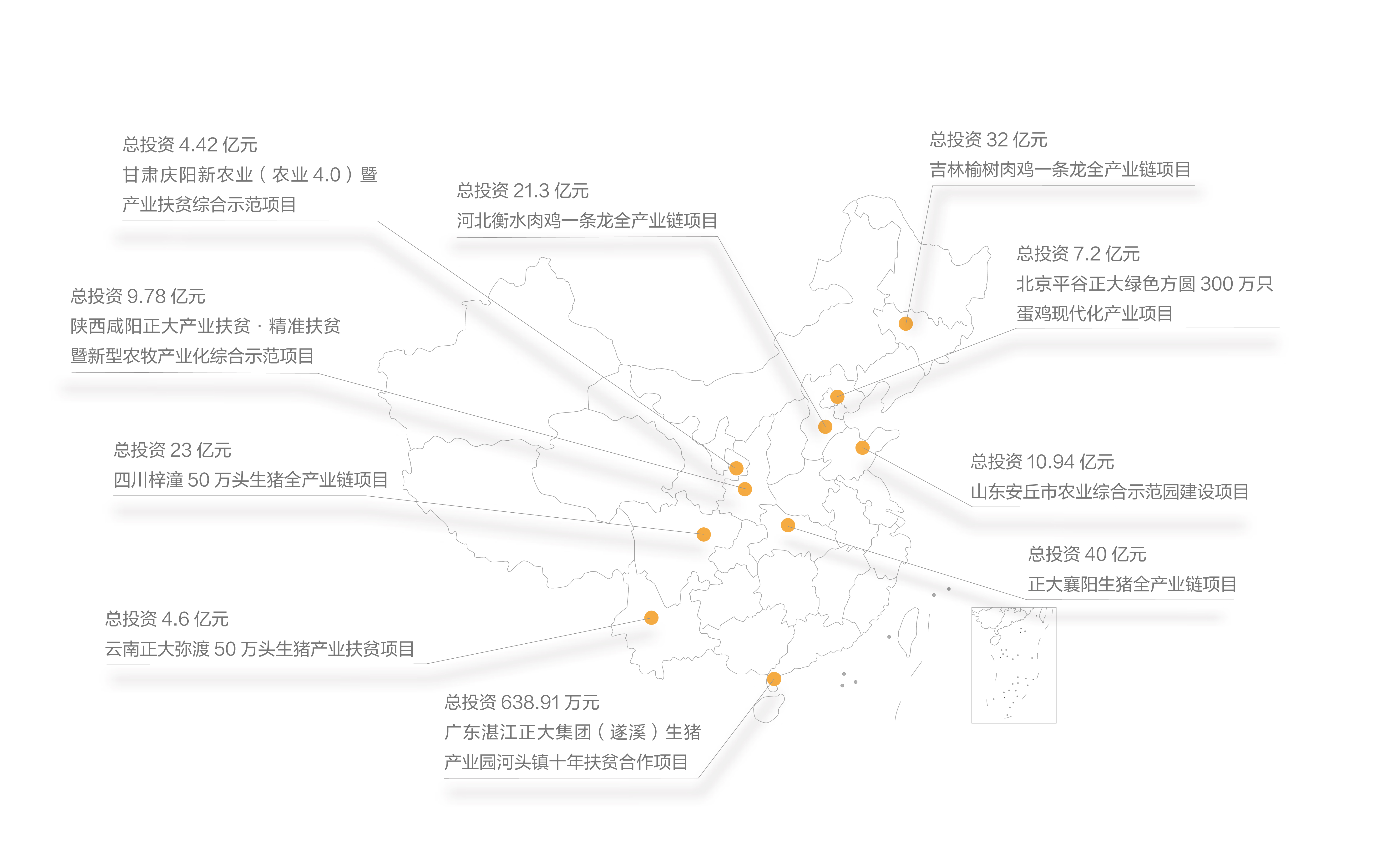 产业扶贫是正大集团的一大特色,为广大农民和贫困户带来了财富和幸福,连续多年被中国商务部中国外商投资企业协会授予履行社会责任优秀案例荣誉,并入选国务院扶贫办企业扶贫案例50佳。据不完全统计,各类产业扶贫项目总投资额已超过245亿元人民币。