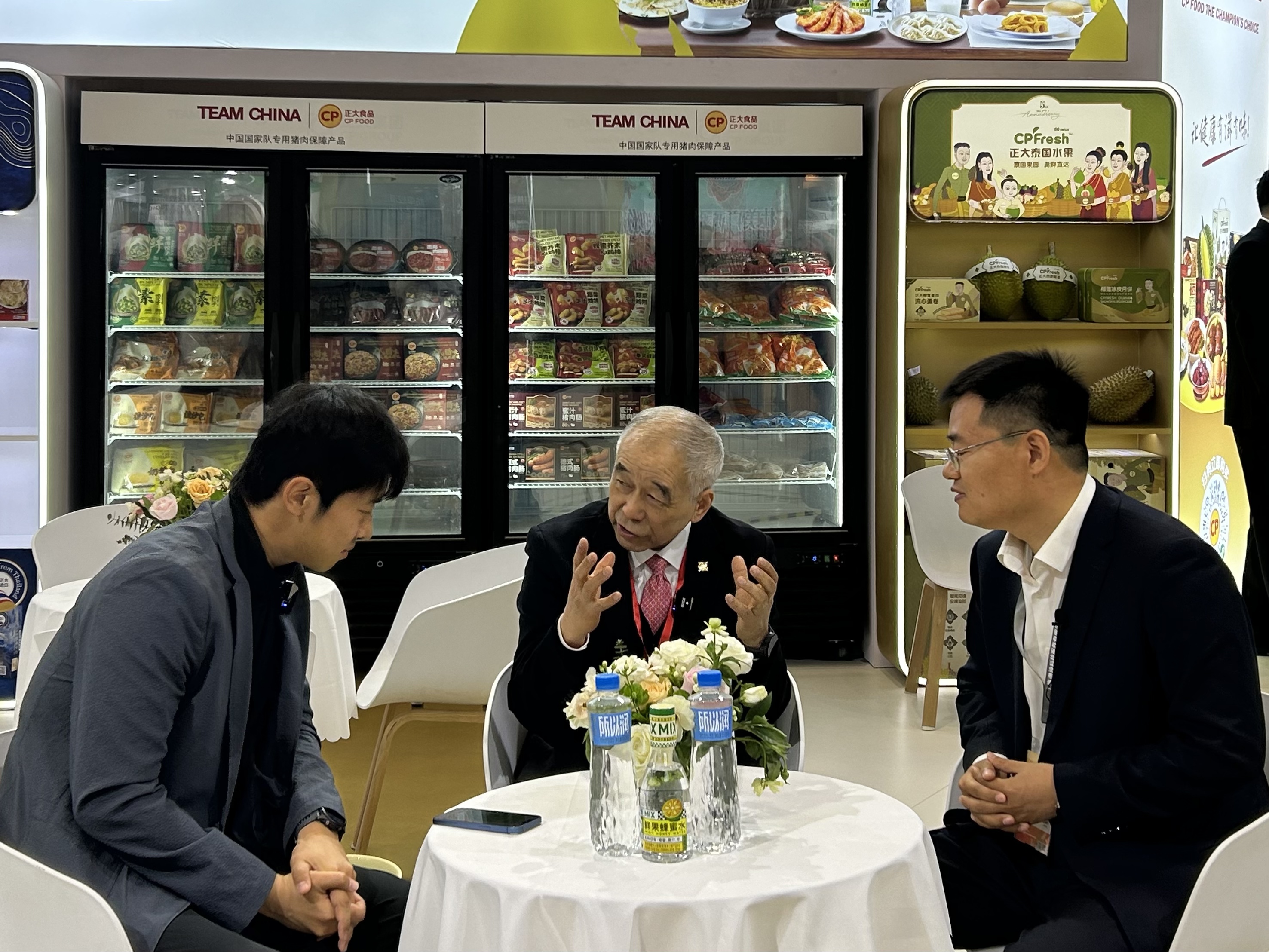 ▲正大集团农牧食品企业中国区资深副董事长薛增一(中)、青岛正大农业发展有限公司总经理张西富(右)接受中畜传媒记者采访。