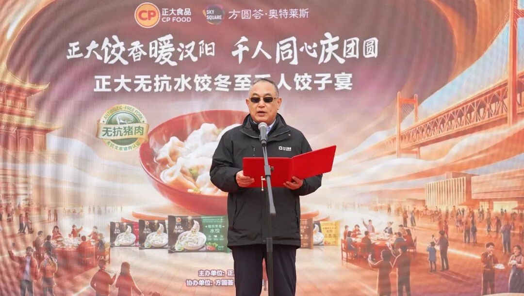 他表示,在冬至这个阖家围坐言欢的团聚日子,正大千人饺子宴把“家”搬到了活动现场,邀请一千多位街坊邻居一起过节,形成了一个大“家”,吃的是饺子,暖的是心,聚的是人气。千位邻里亲朋共聚一堂,同举箸,共品饺,这幅“千人同宴,饺香盈城”的动人画卷,正是传统温情在新时代社区中的盛大绽放与美好延伸。6666份安全、优质的正大无抗鲜猪肉饺子,传递了正大食品一以贯之的新鲜、安全、营养、美味的产品理念,也是百年企业坚守行业龙头标准的初心体现,向广大消费者递出了一份“让每一餐都安全,让健康触手可及”的郑重承诺!