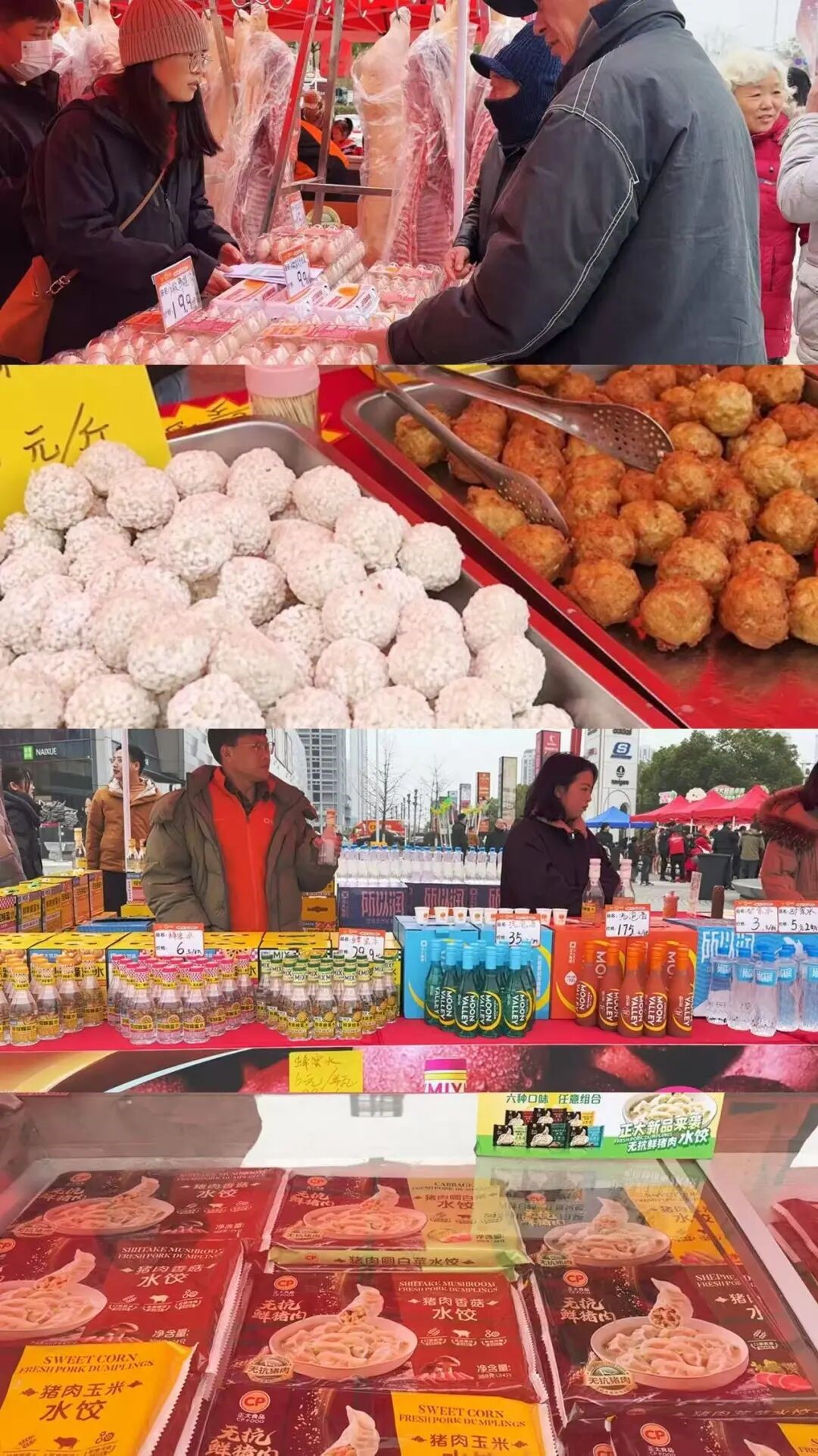 活动现场设有正大惠民生鲜市集,鸡蛋、鸡肉、猪肉、香肠、现炸鲜肉丸、正大水饮等节日食材优惠促销,让广大消费者提前感受年味、把新鲜带回家。
