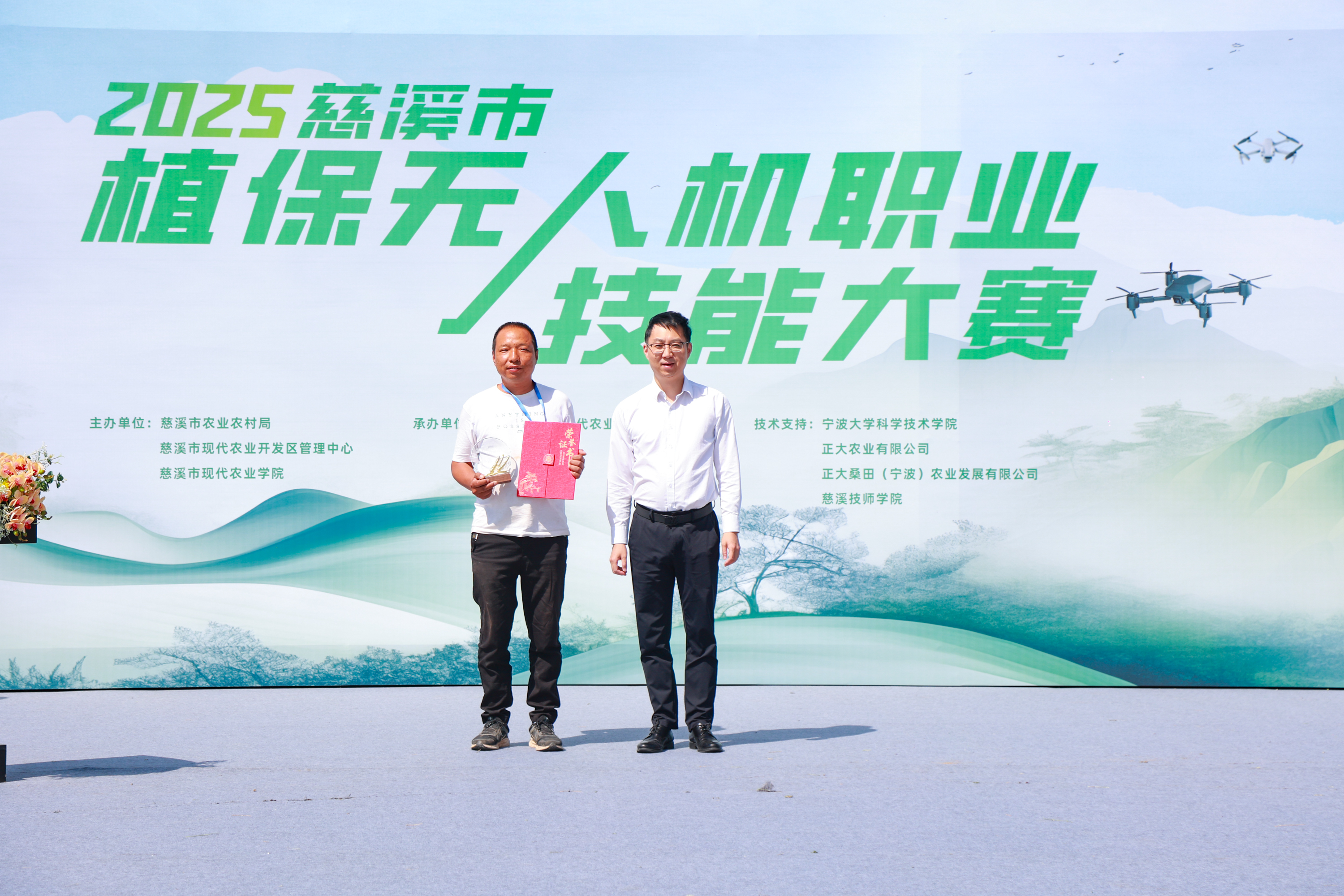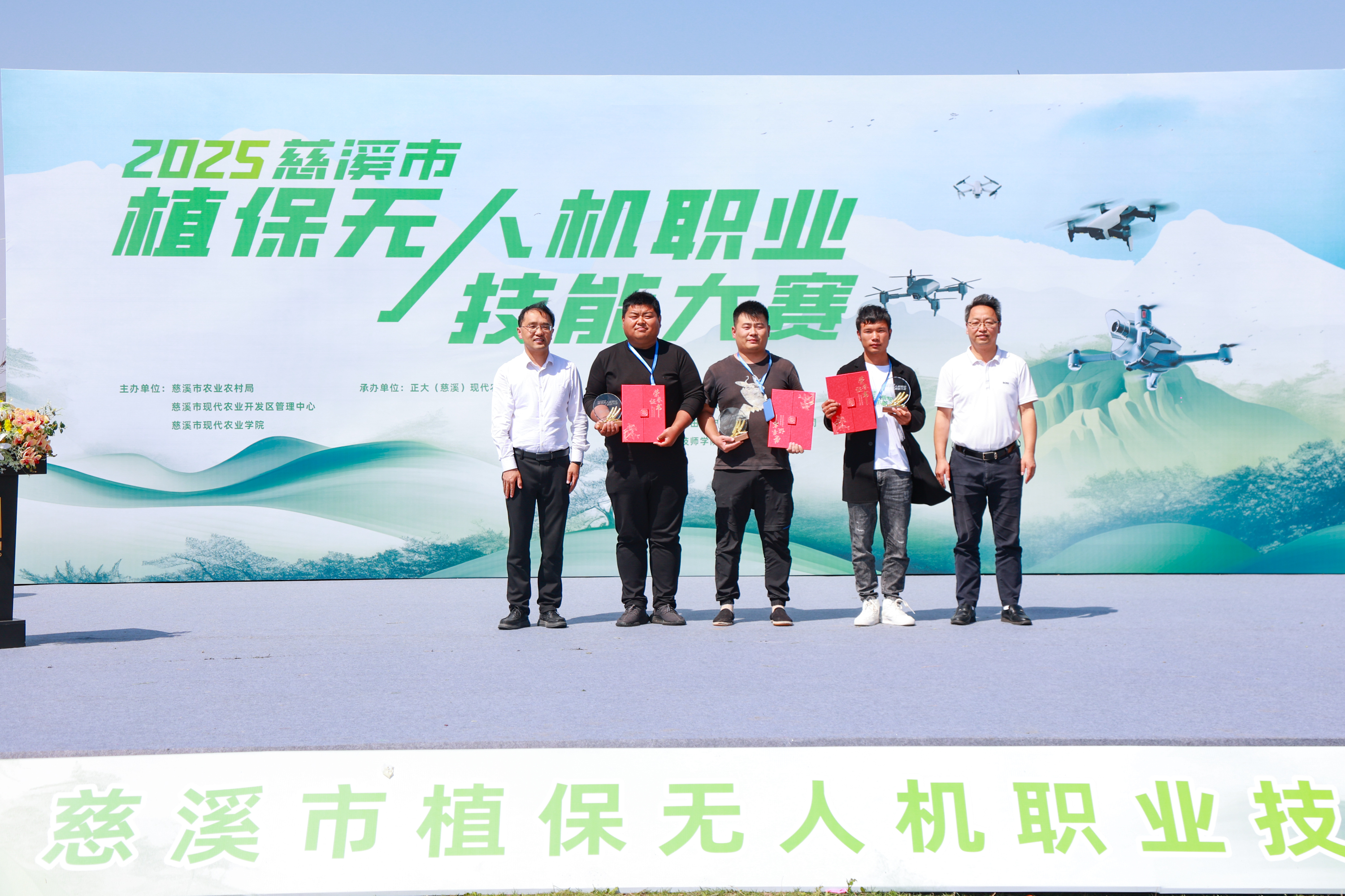 慈溪市首届植保无人机大赛由慈溪市农业农村局、慈溪市现代农业开发区管理中心、慈溪市现代农业学院主办,宁波大学科学技术学院、正大农业有限公司、正大桑田(宁波)农业发展有限公司、慈溪技师学院提供技术支持。