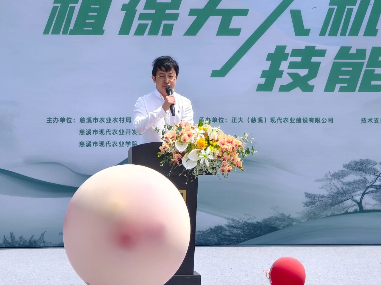 慈溪市现代农业开发区管理中心主任陈唯一为本次大赛致开幕词。他表示,植保无人机大赛的举办,离不开正大集团的全力支持,以及慈溪市农业农村局的筹划指导。作为全球农牧行业的领军企业,正大集团不仅为赛事提供了高规格的技术支持,更通过田间学校、科研合作等方式,持续赋能慈溪农业现代化。