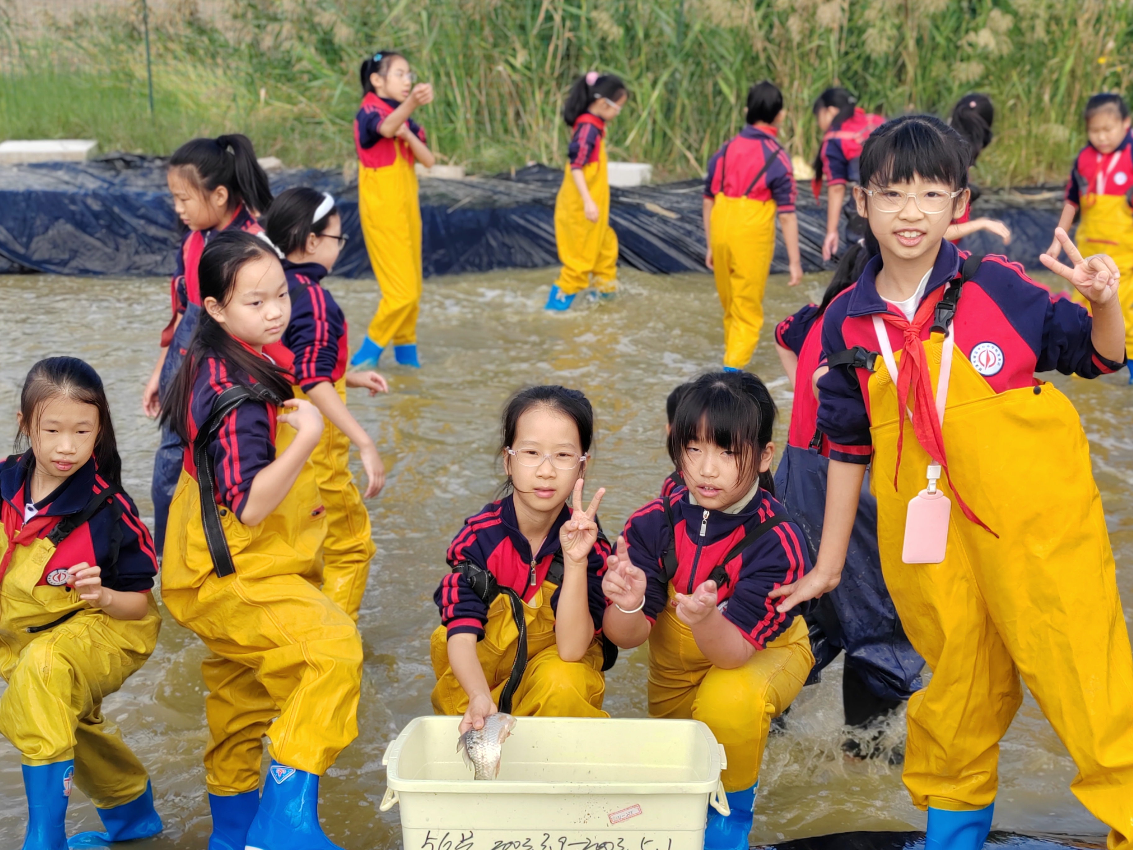 除了食品科学探索,学生们还以“滩涂小司机”的身份,沉浸式体验慈溪特色滩涂农耕民俗。学生们骑上泥马船在滩涂滑行,在鱼塘里捕鱼,寻觅秋日收获,在欢声笑语中感受围垦农耕的辛劳与快乐,也加深了对本土文化的认识。
