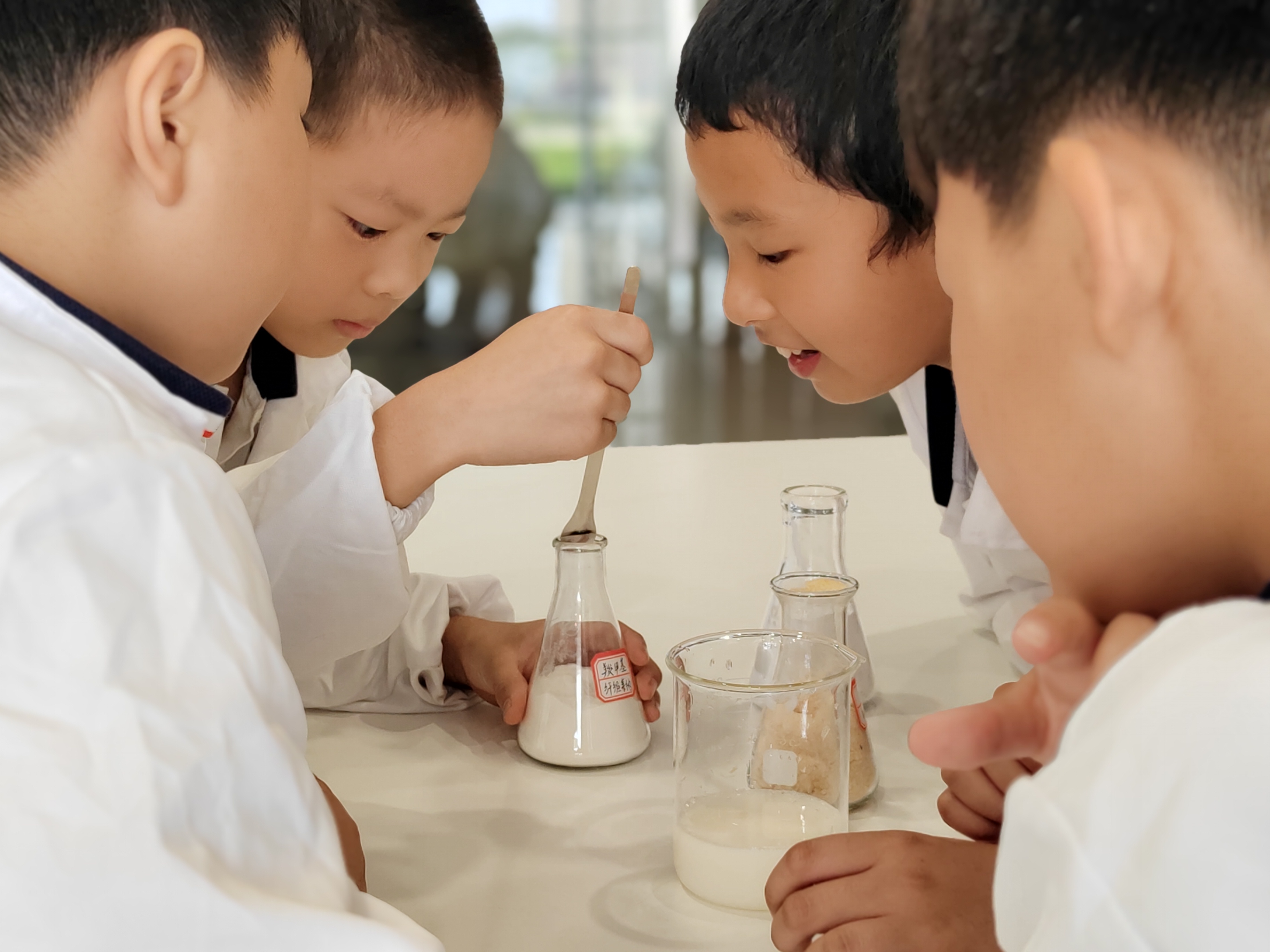 “食品科学探秘”课程里,学生们参与模拟食品的制作过程,在动手操作中了解食品成分构成的科学原理,学会以理性视角分辨食品品质,树立健康科学的饮食观念。