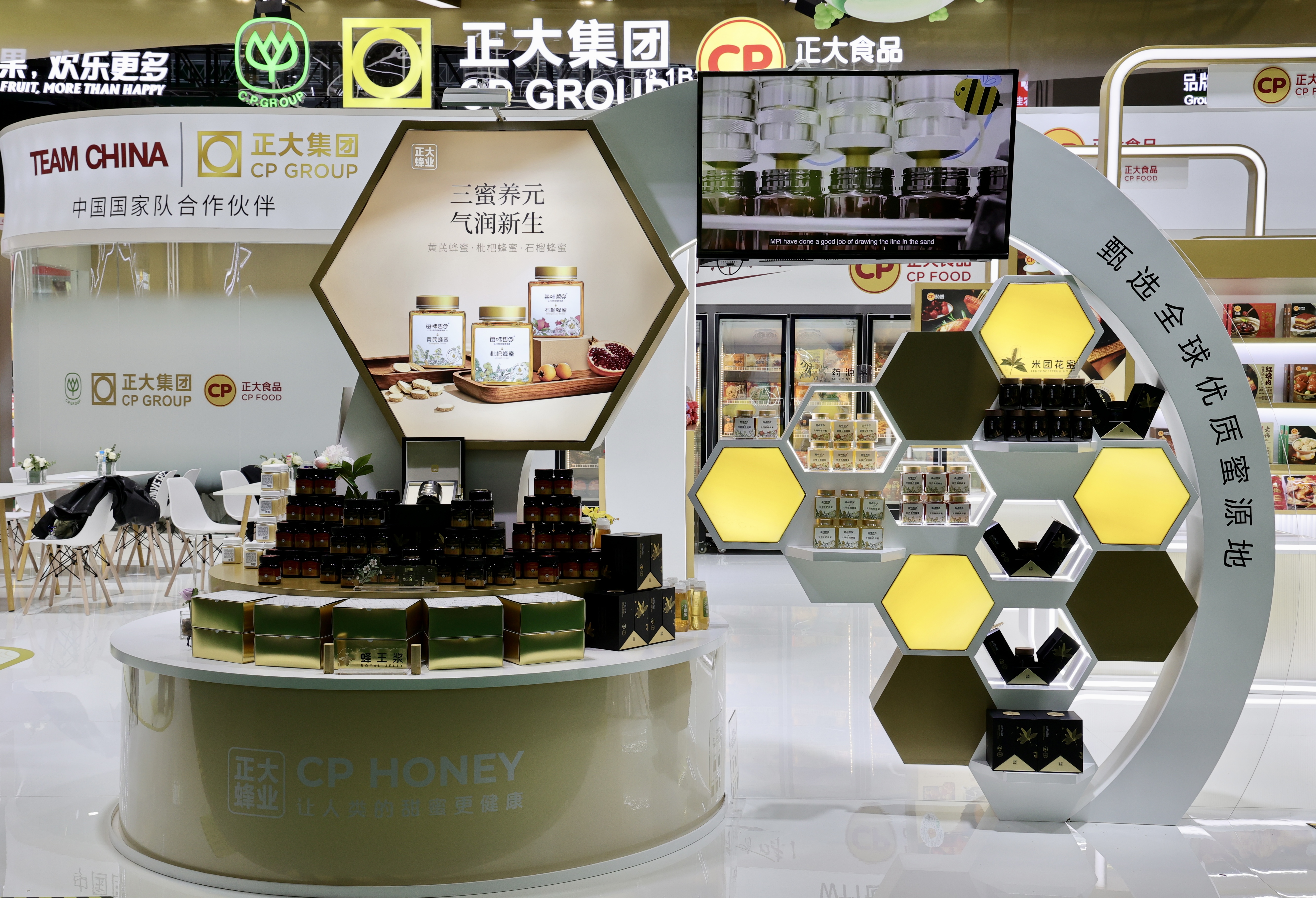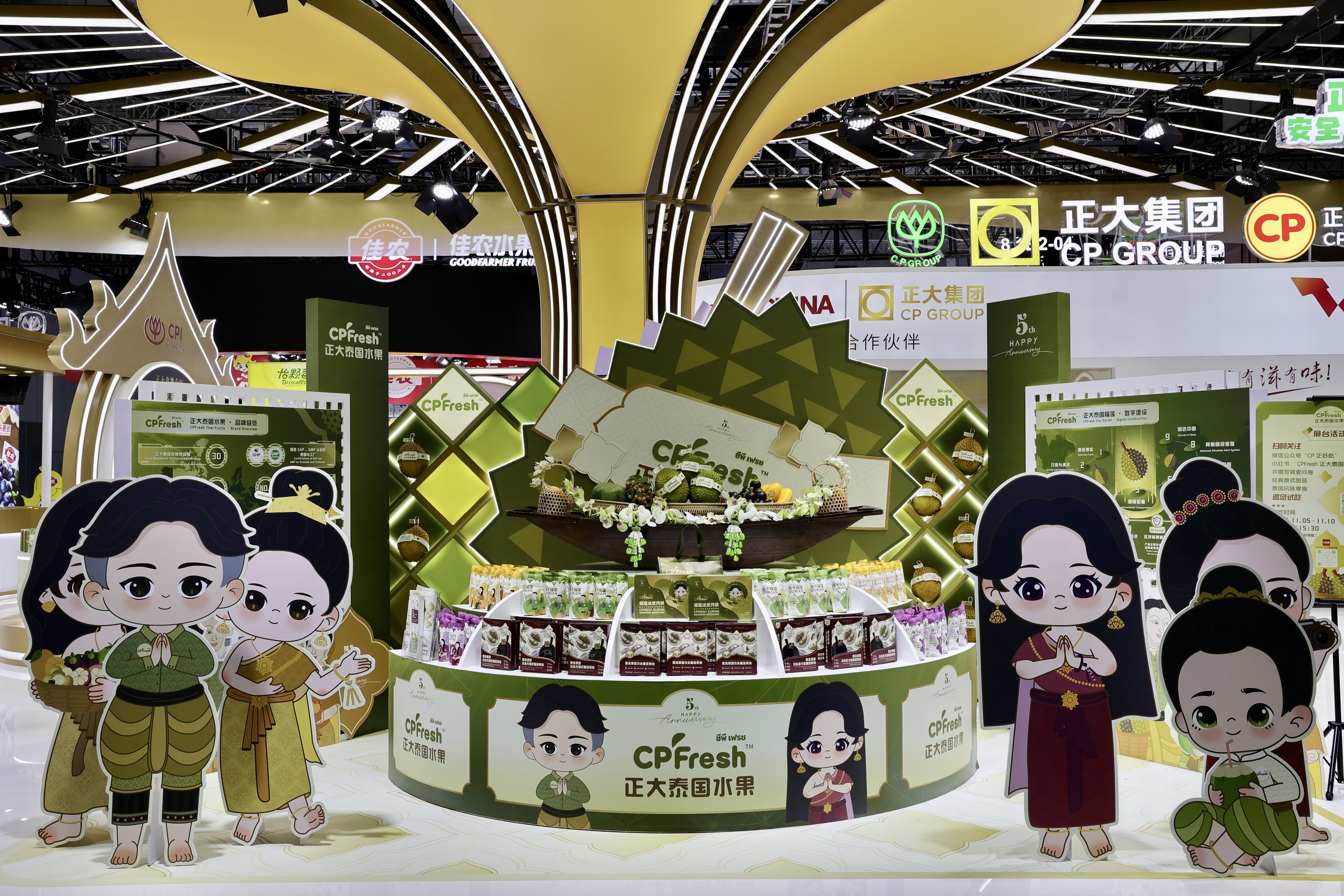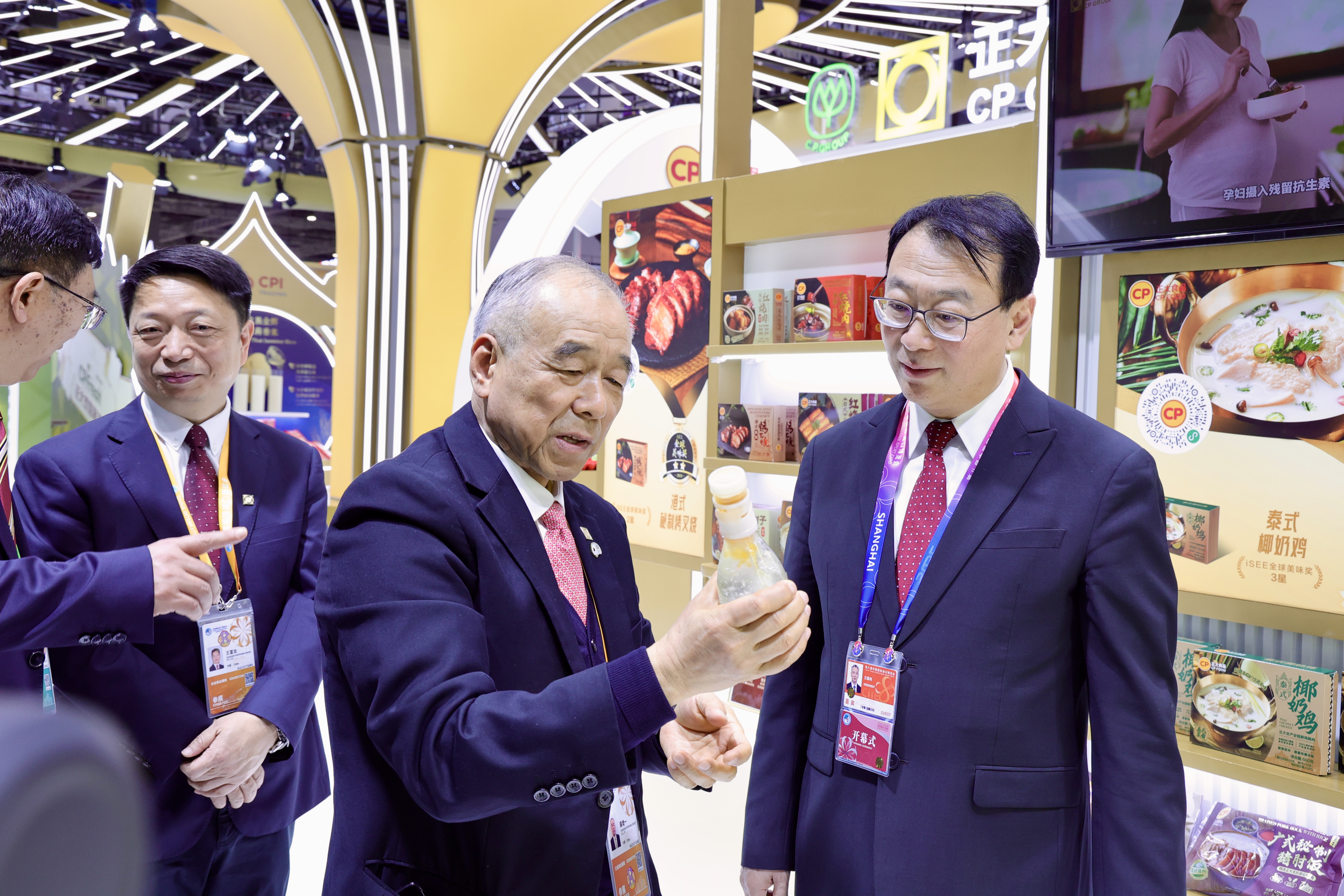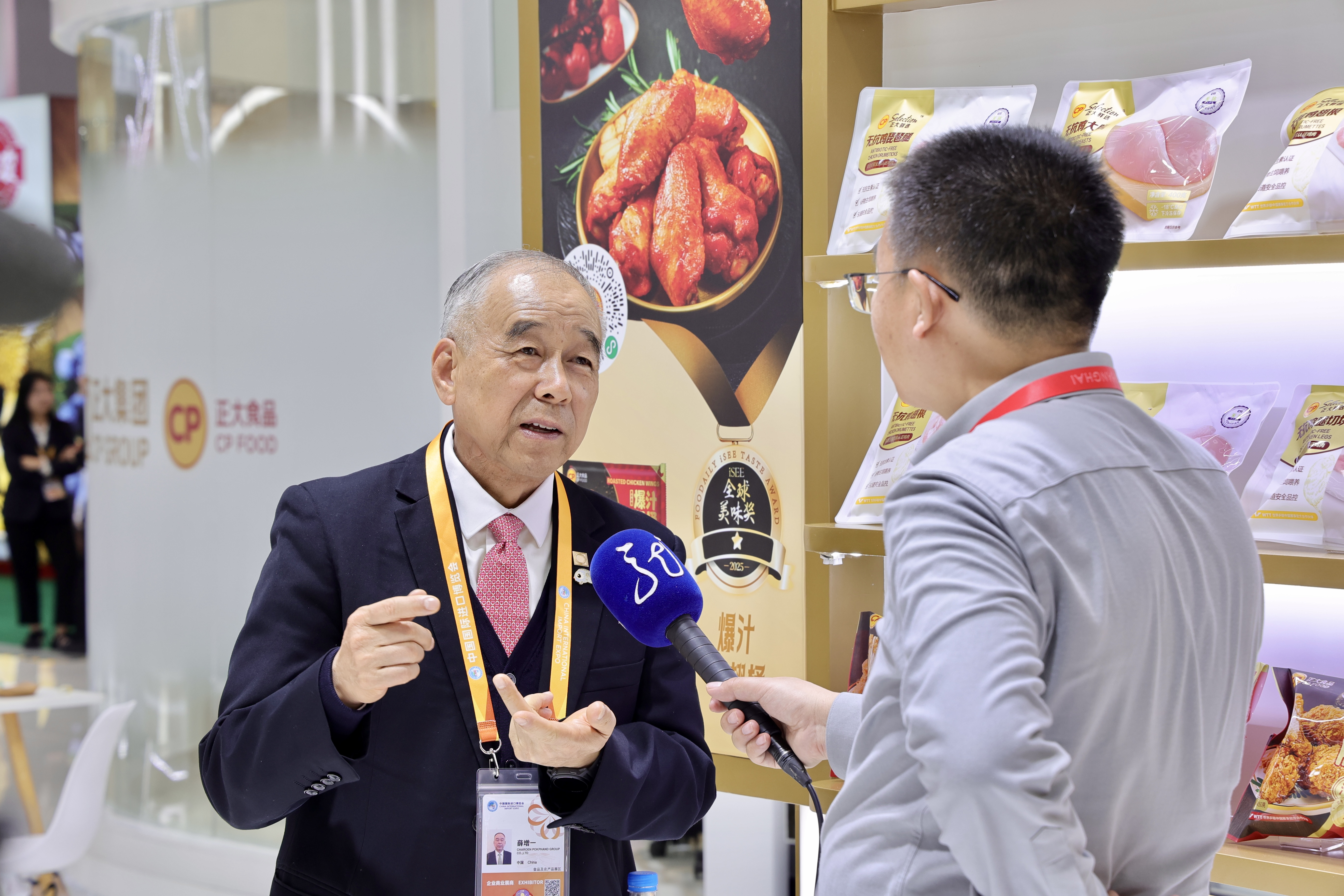 本届进博会上,正大集团组织20个业务板块参展,共231款产品,涵盖了正大泰国大虾、CP Fresh泰国水果、酱料产品、泰国大米、预包装食品、主食类、油炸小食、水产、香肠、鸡蛋、猪肉、鸡肉、榴莲制品、鳄鱼产品、水饮、休闲零食、蜂蜜、红酒、茶叶等。