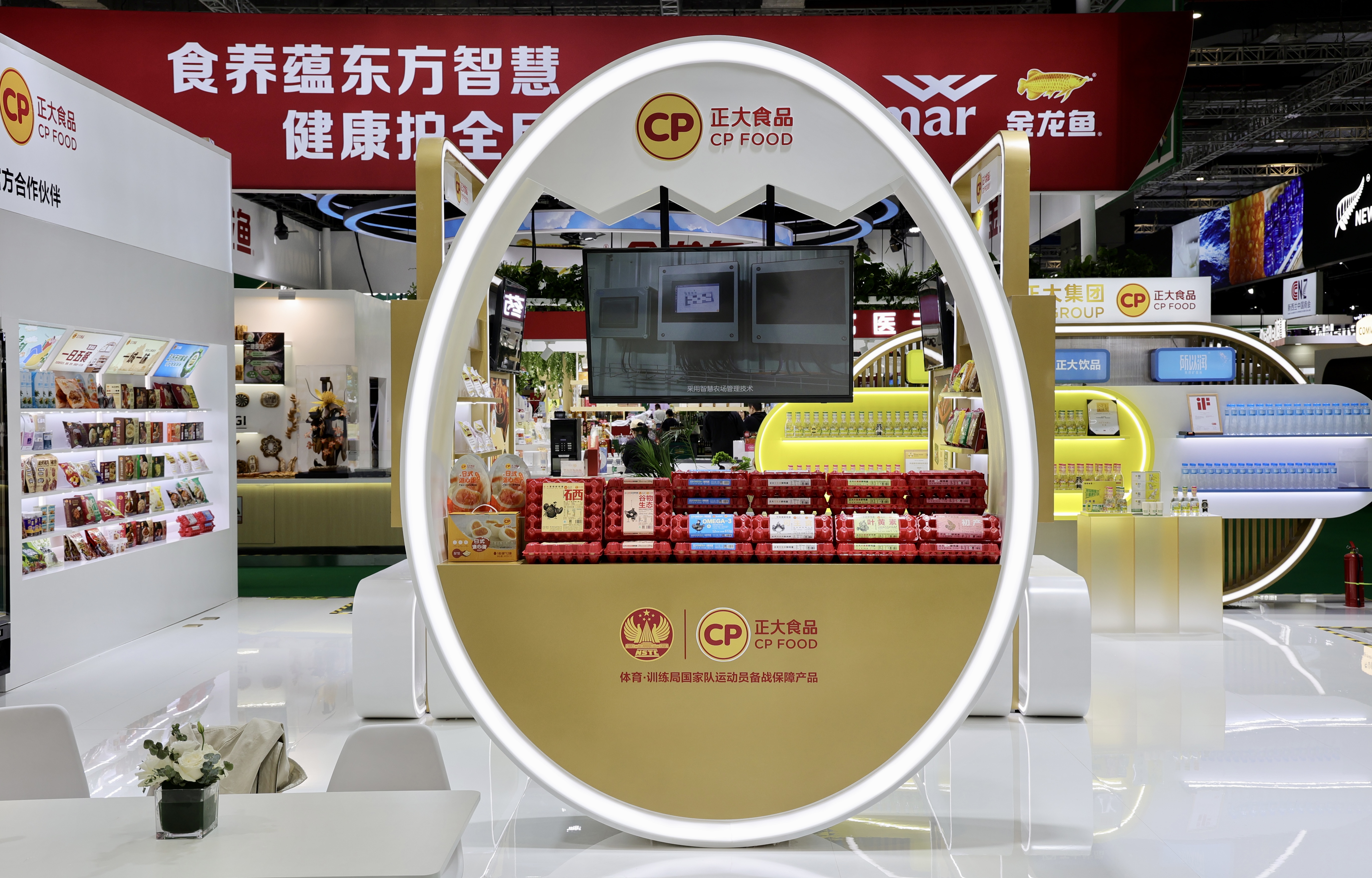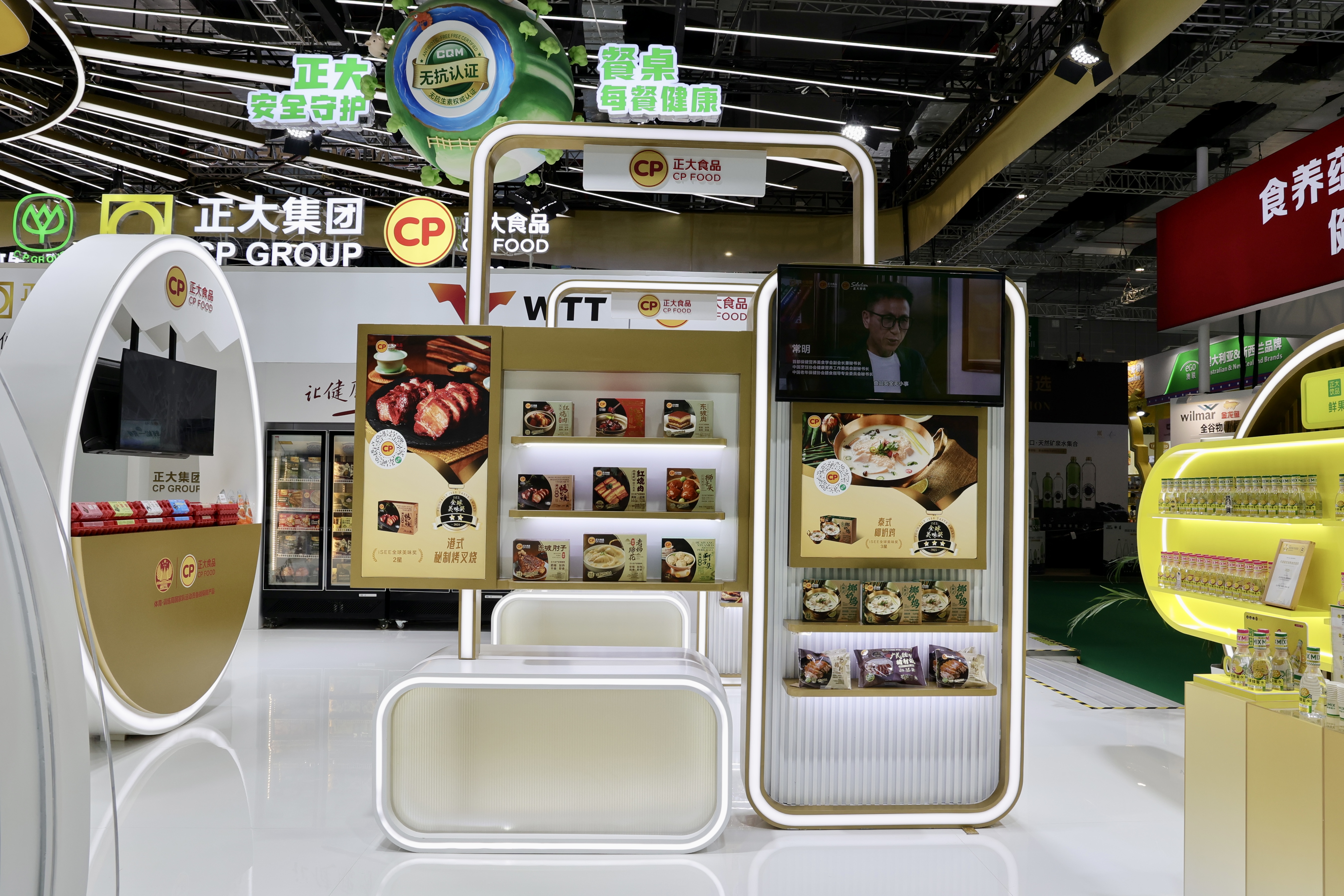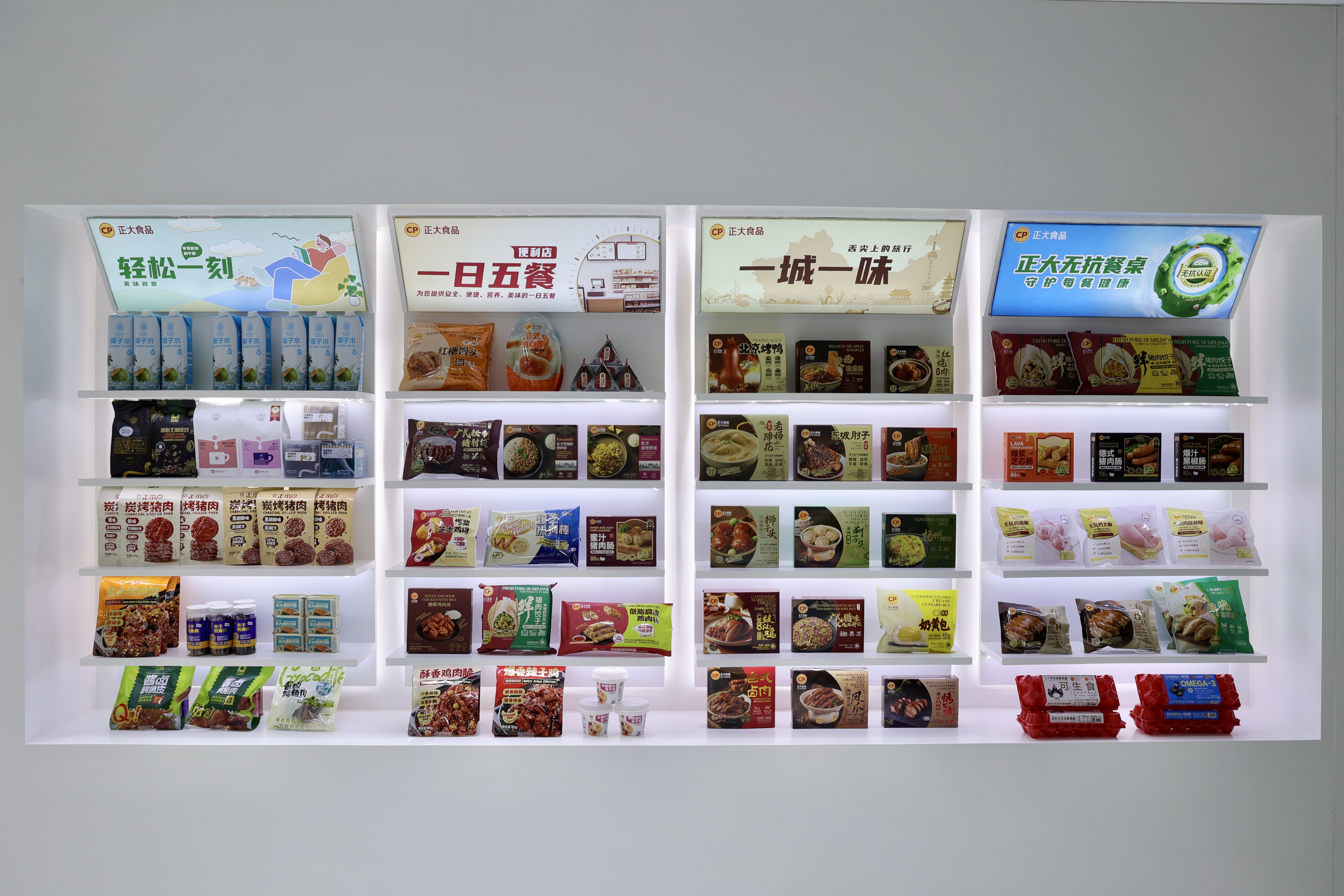 ▲现场特别设立四大主题食品展示区:满足全时段需求的“一日五餐系列”,践行安全承诺的“无抗餐桌系列”,还原地道风味的“一城一味系列”,以及包含椰子水、咖啡、炭烤猪肉等产品的“轻松一刻系列”,充分展现了正大集团为消费者提供安全、健康、营养、美味、便捷食品的强大能力。