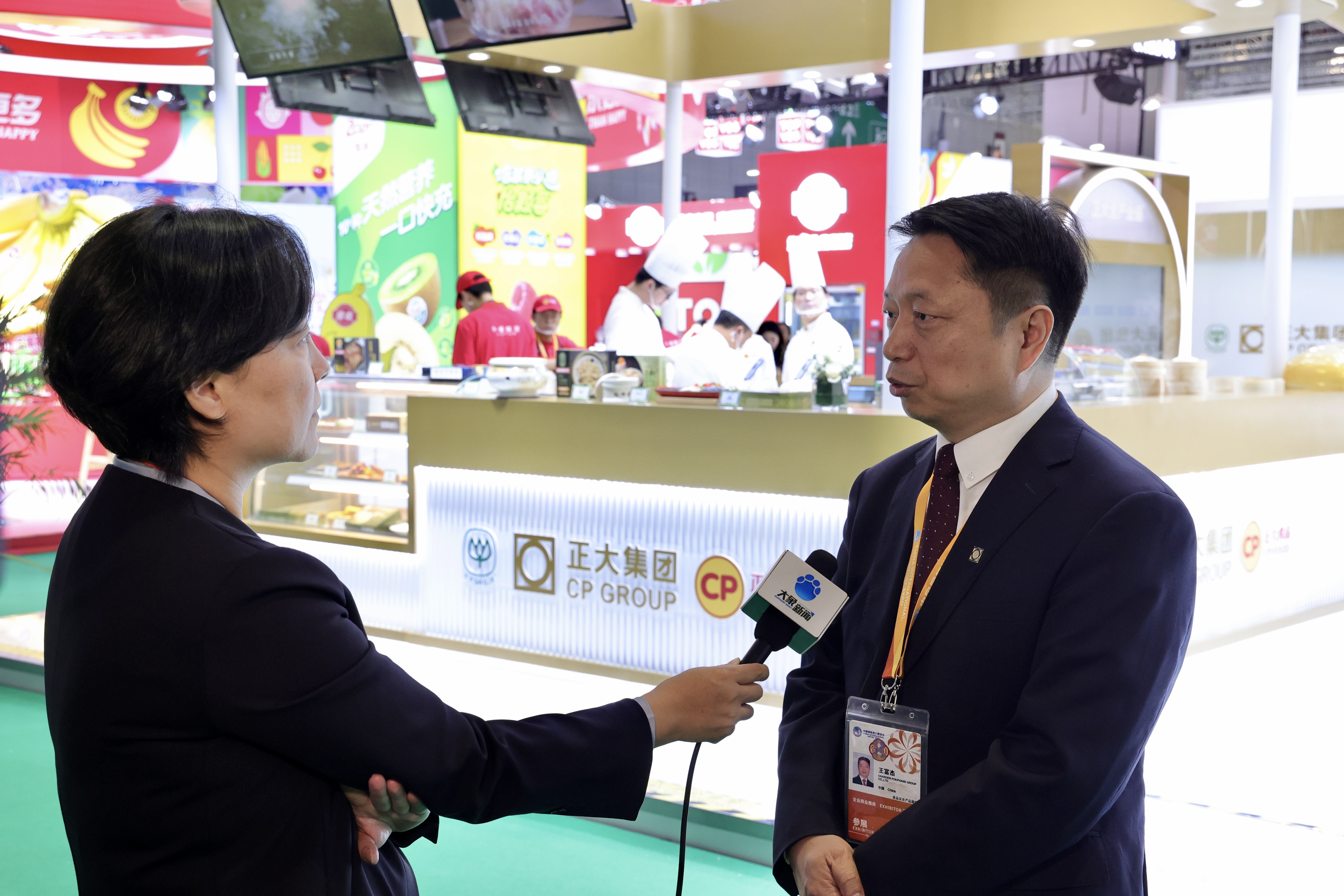 ▲11月5日,王富杰资深副董事长(右)在正大展馆接受大象新闻记者采访。