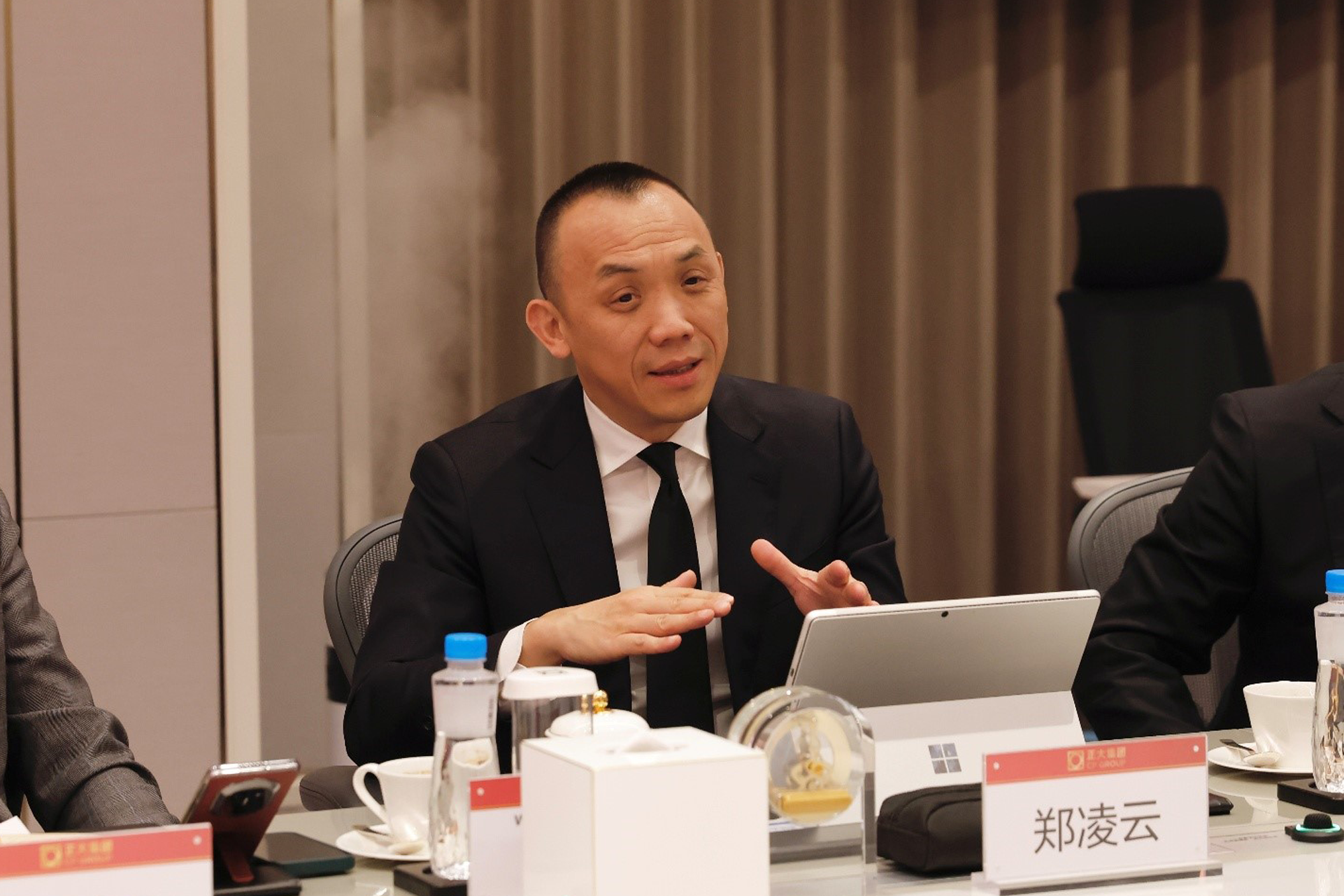 ▲正大集团农牧食品企业中国区财会长郑凌云在签约仪式上发言。