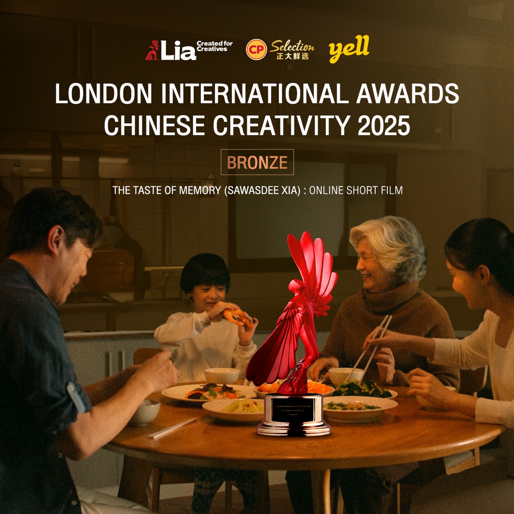 ▲正大集团携手耶而(上海)广告传媒有限公司打造的广告短片《The Taste of Memory—Sawasdee Xia》荣获2025伦敦国际奖(London International Awards—LIA)中国创意单元网络短片类铜奖。