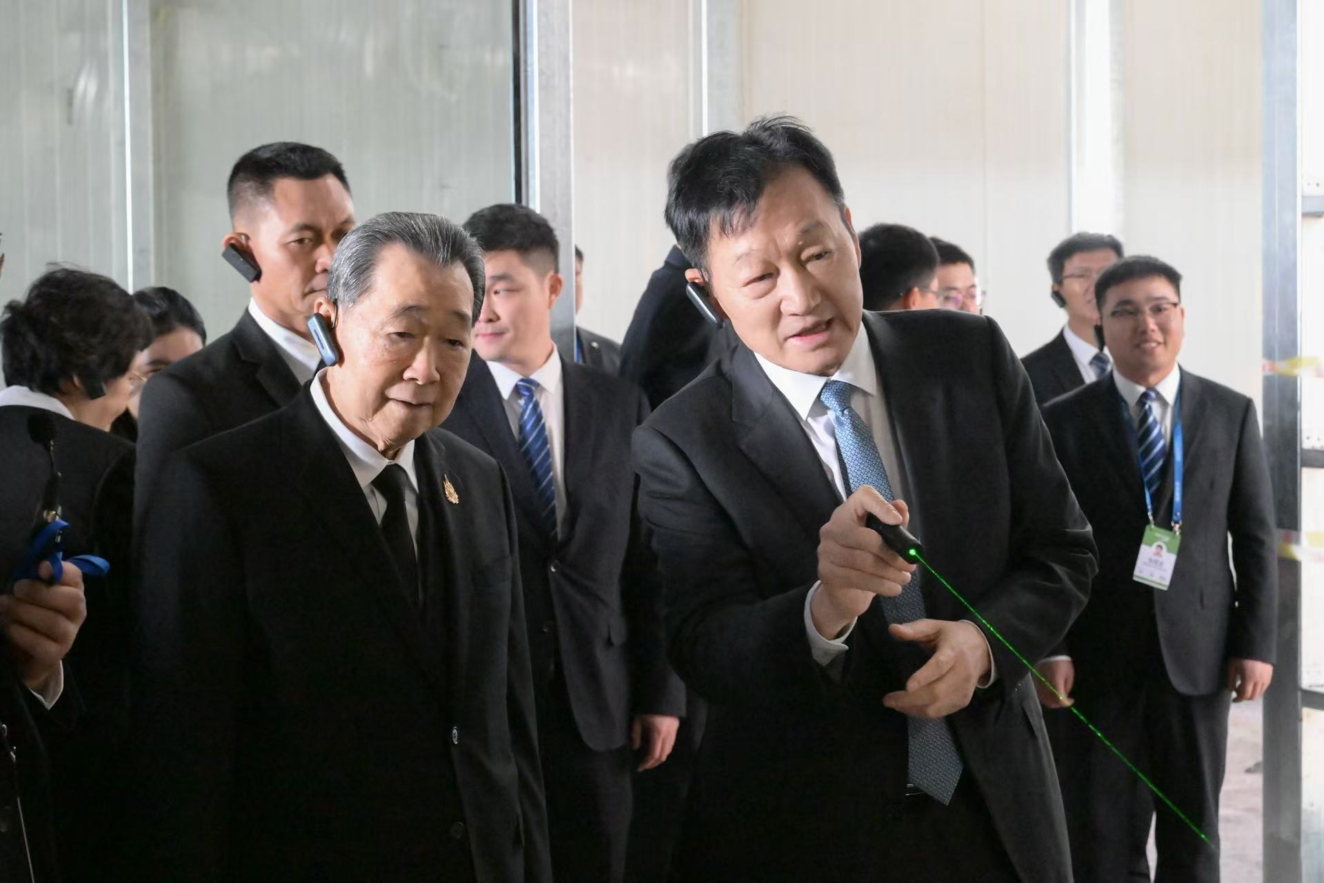 在秦英林董事长的陪同下,谢国民集团资深董事长、谢吉人集团董事长一行参观了牧原集团生猪育种中心,对牧原在生猪育种领域的创新实践与技术成果表示赞赏。