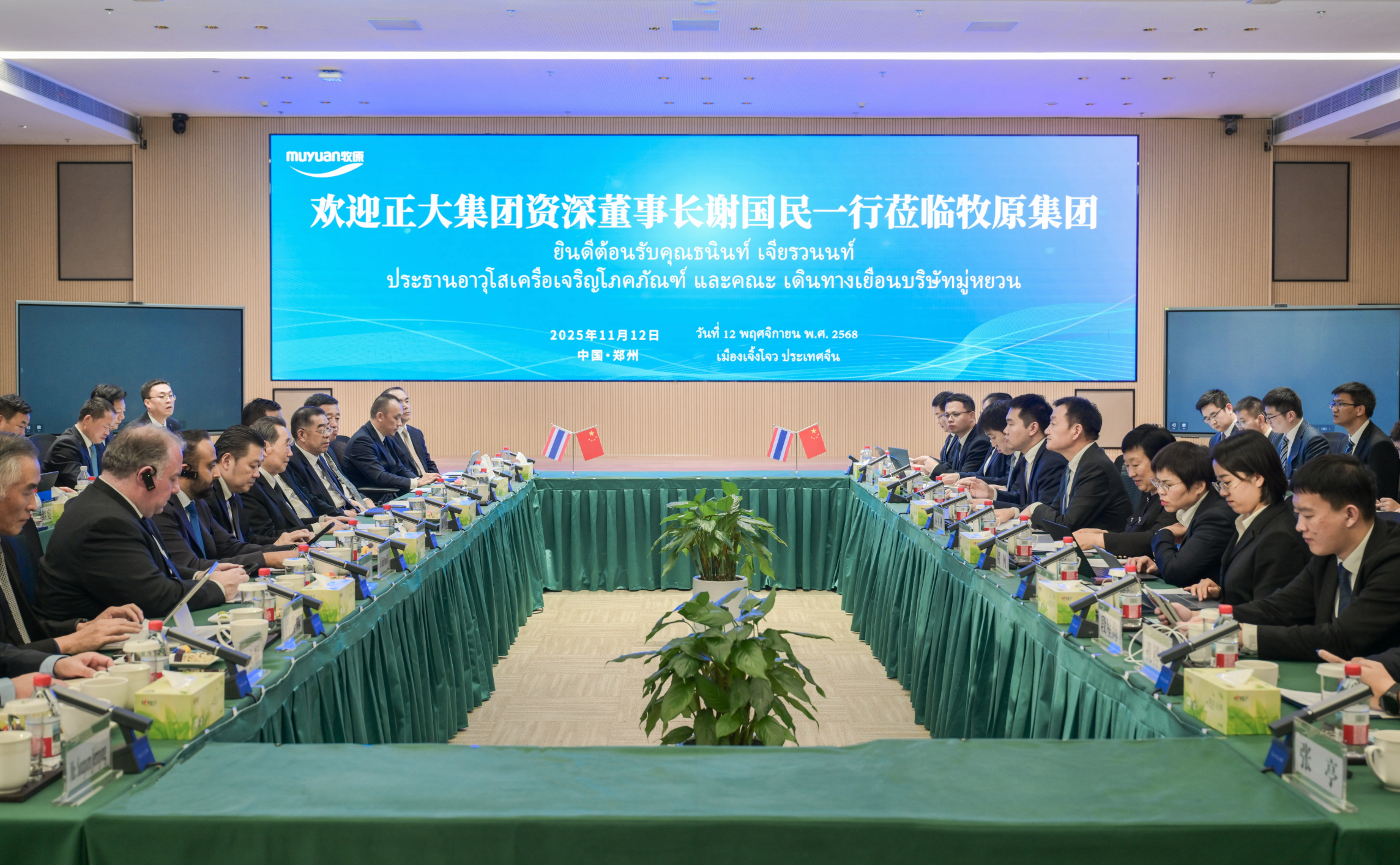 11月12日,正大集团资深董事长谢国民、董事长谢吉人率正大集团资深副董事长兼中国区CEO杨小平、资深副董事长谢毅等高管代表团,赴牧原集团郑州研发中心进行深度战略交流。牧原集团董事长秦英林、董事钱瑛、首席财务官高曈等热情接待。