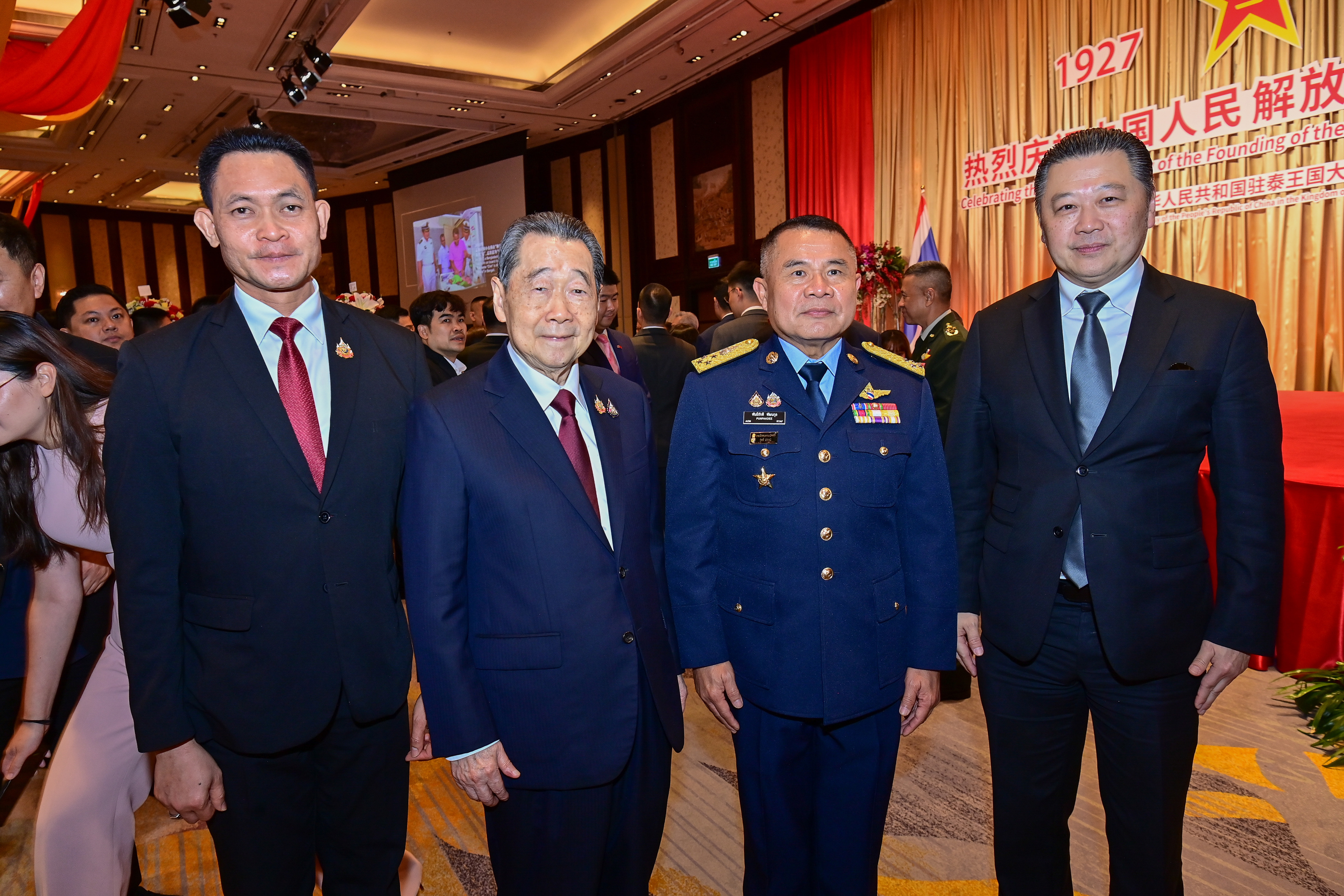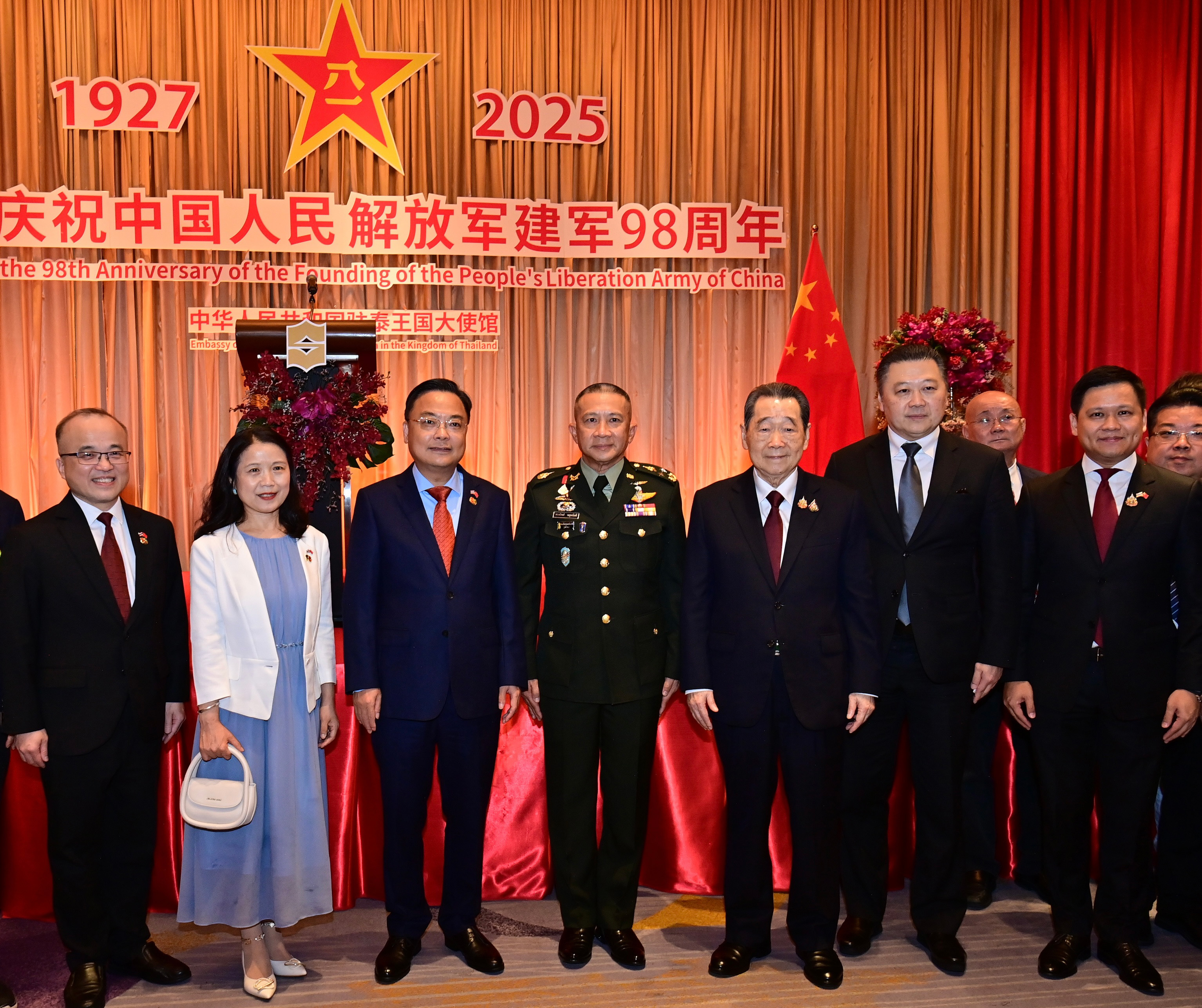 7月31日,中国驻泰国大使馆隆重举行庆祝中国人民解放军建军98周年招待会。中国驻泰国大使张建卫参加招待会。泰国防部副次长塔拉蓬上将、泰军最高司令颂威上将、泰陆军副司令纳塔乌上将、泰海军高级顾问普冲海军上将、泰空军司令潘帕迪空军上将等军政要员、各国使节、华人华侨代表1200余人出席招待会。中国驻泰国大使馆国防武官张林宏少将在招待会上致辞。