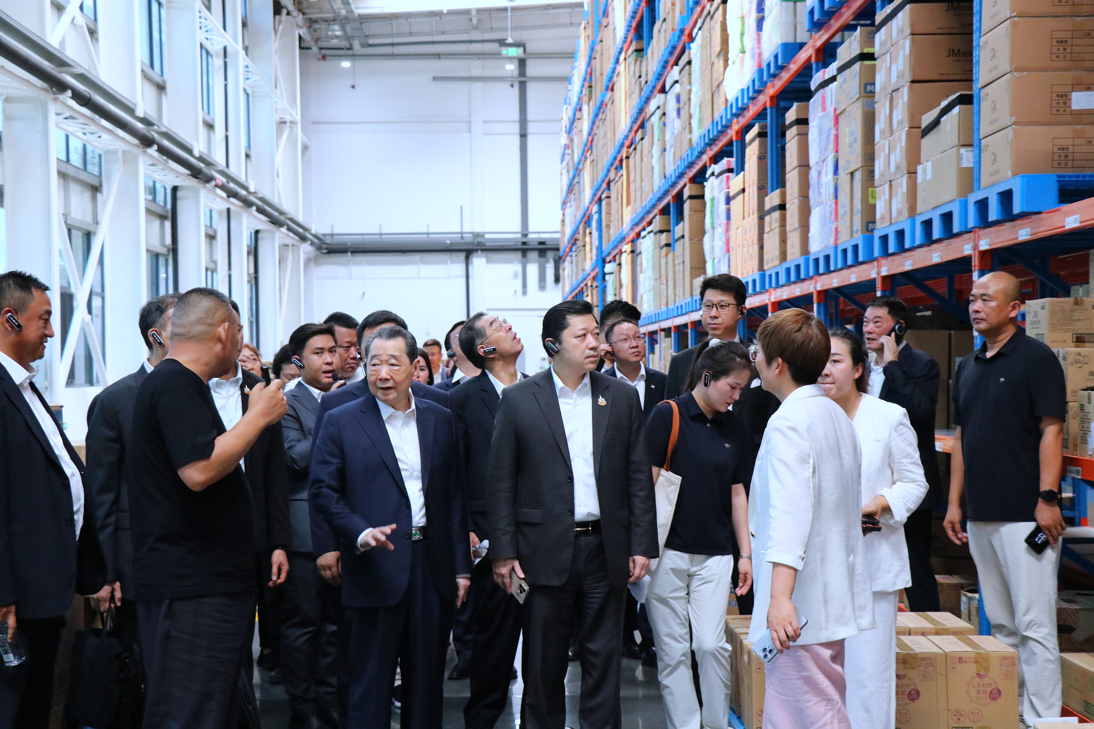 正大集团资深副董事长谢毅,十三届汕头市政协主席、第二十二届国际潮团总会主席谢泽生,正大集团中国区财务长杨森源,正大集团首席执行官谢镕仁夫人张林芝,CP Axtra CEO Mr. Tanin Buranamanit, CP Lotus Thailand CEO Mr. Sompong Rungnirattisai,Makro COO Mrs. Uea-Angkun Tanvisut,Hypermarket Operations Senior Director Mr. Monchai Intarapornudom,正大集团资深副总裁何银友,CPFresh正大泰国水果品牌首席执行官郑智慧,正大集团农牧食品企业中国区副董事长王鸿章,正大优鲜事业线财务总监严强,以及泰国小老板团队和管培生等参加参观交流。