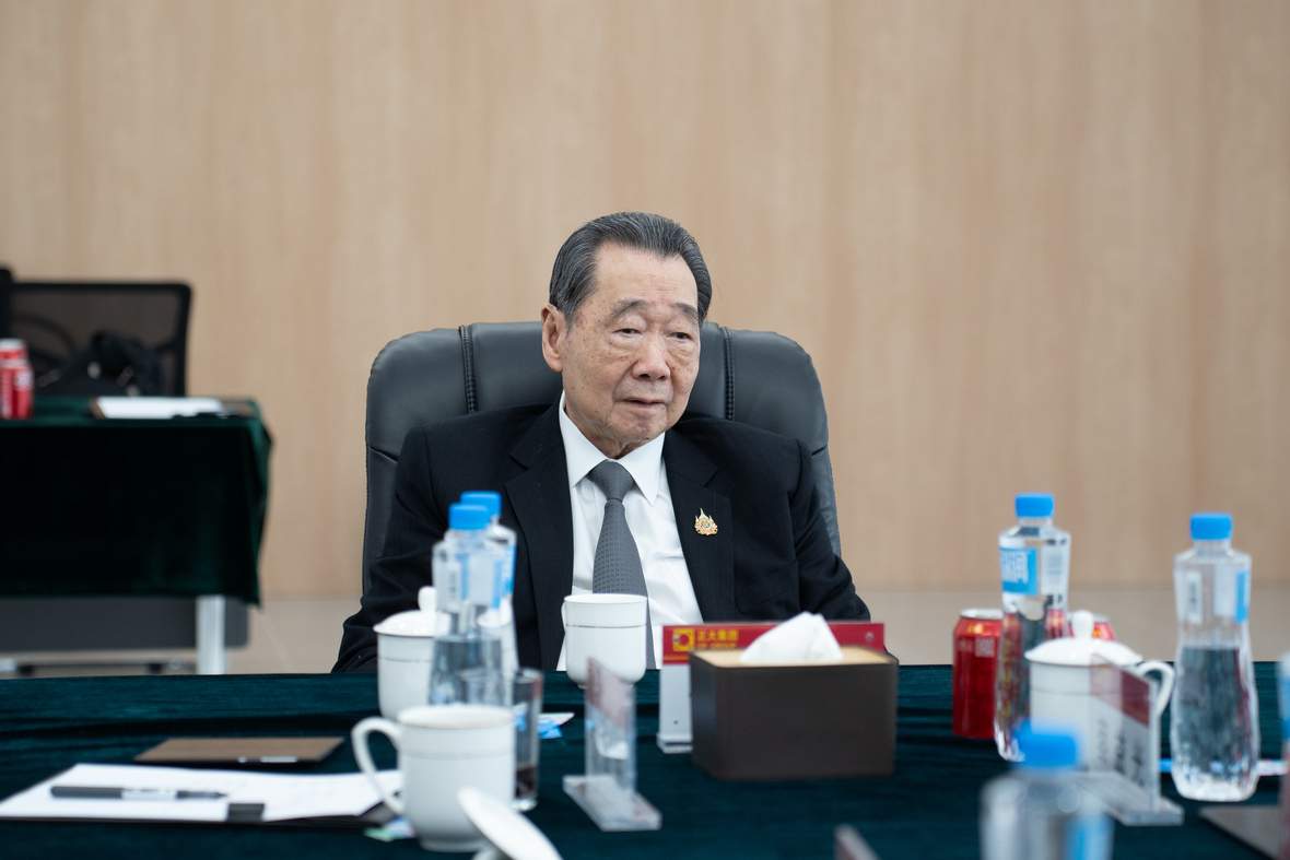 ▲谢国民集团资深董事长听取正大桑田(东营)农业发展有限公司相关负责人的汇报。