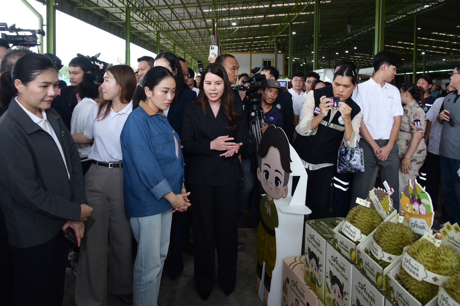 5月17日,泰国总理佩通坦·钦那瓦女士(Ms. Paetongtarn Shinawatra)率内阁成员前往泰国尖竹汶府,对CPFresh正大泰国水果品牌合作的水果出口包装厂进行视察。CPFresh正大泰国水果品牌首席执行官郑智慧女士全程陪同接待,并围绕提升物流系统效率与优化出口标准体系等向总理作汇报,旨在全面提升泰国水果在国际市场的竞争力,将“泰国榴莲”打造成为具有全球影响力的农产品标杆。