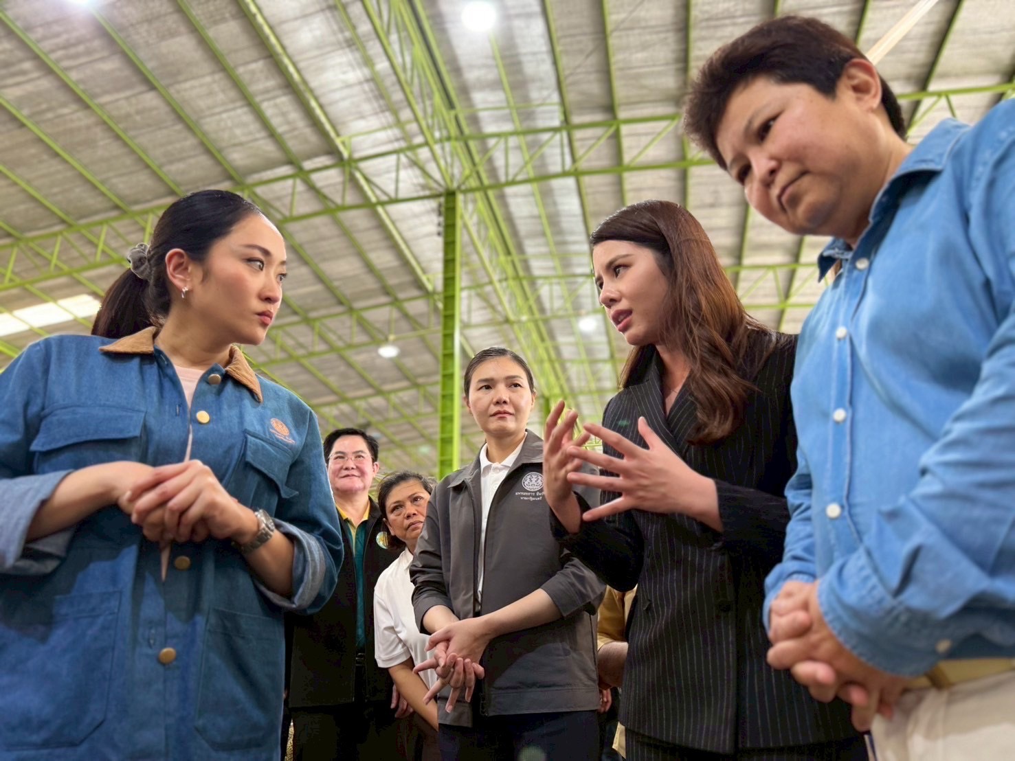 ▲泰国总理佩通坦·钦那瓦女士(左)抵达CPFresh正大泰国水果出口包装厂,CPFresh正大泰国水果品牌首席执行官郑智慧女士(右)热情接待并引导参观。