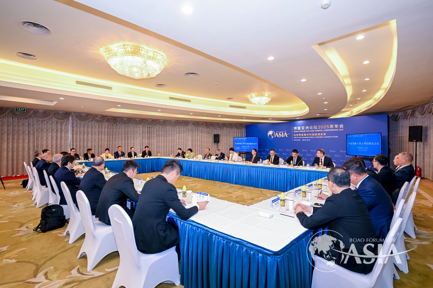3月26日上午,博鳌亚洲论坛2025年年会·华商领袖与华人智库圆桌会议在海南博鳌举行。会议由国务院侨务办公室主办,以“变局开启新局 发展创造未来”为主题,来自15个国家和地区的23名华商代表、民营企业家和智库专家出席会议。大家聚焦“普惠包容的经济全球化:华商机遇与挑战”“新质生产力与中国式现代化”“促进民心相通,构建亚洲命运共同体”三个分议题分享体会。