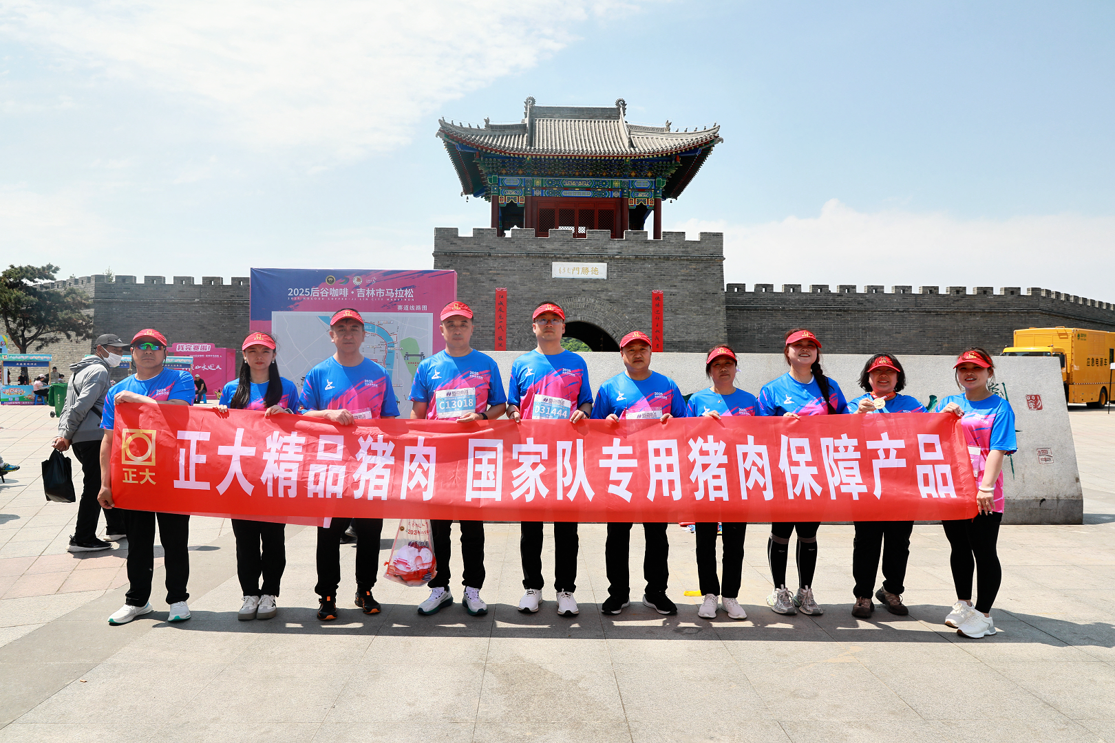 比赛当天,晨光微熹,吉林中新正大的选手们早早来到人民广场集结。整齐划一的队服在阳光下熠熠生辉,选手们精神抖擞,一边进行热身活动,一边相互交流着比赛的期待与信心。“优质猪肉,美味无忧,吉马燃情,正大同行”响亮的口号声在广场上空回荡,整齐的步伐踏出了必胜的决心。