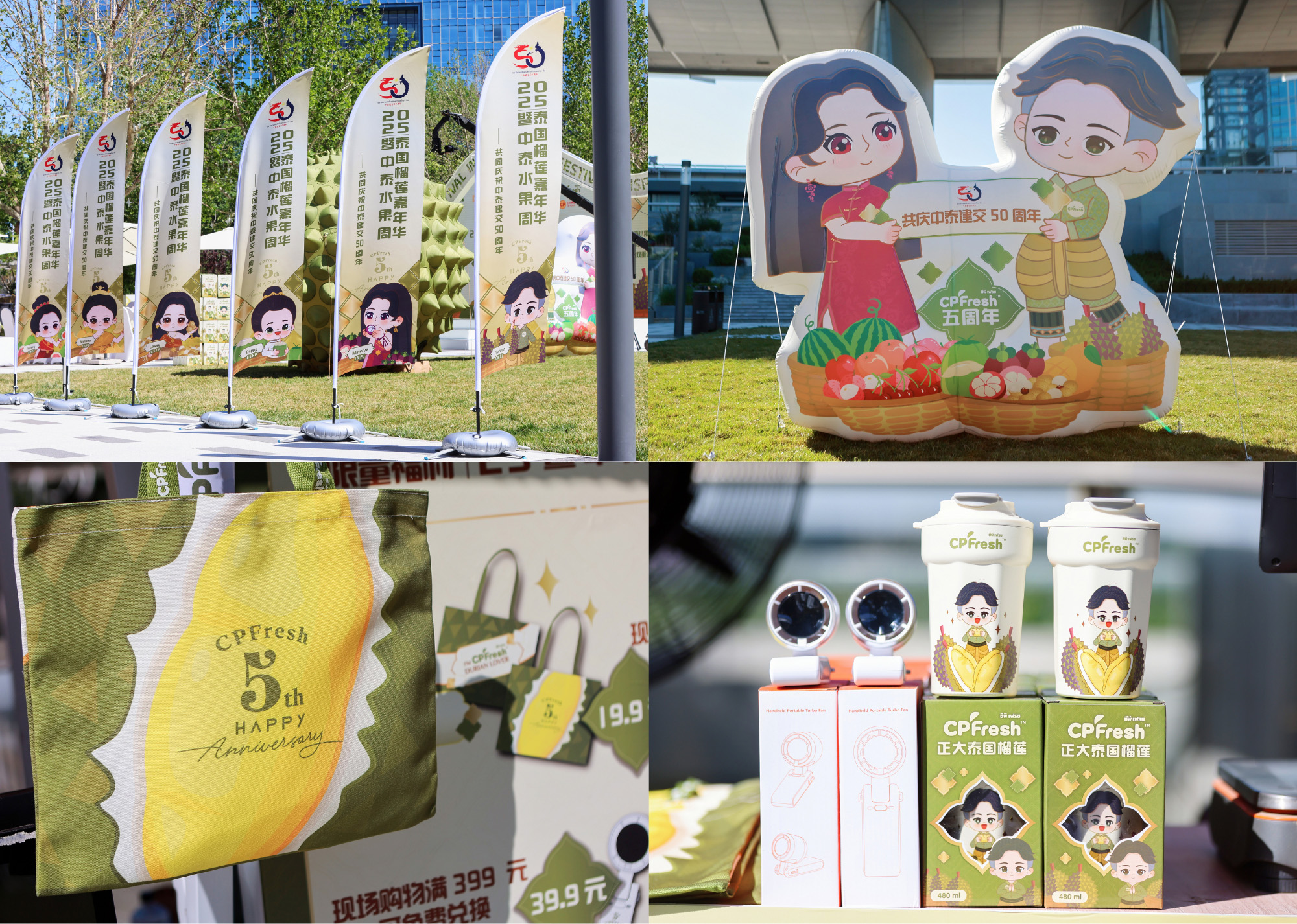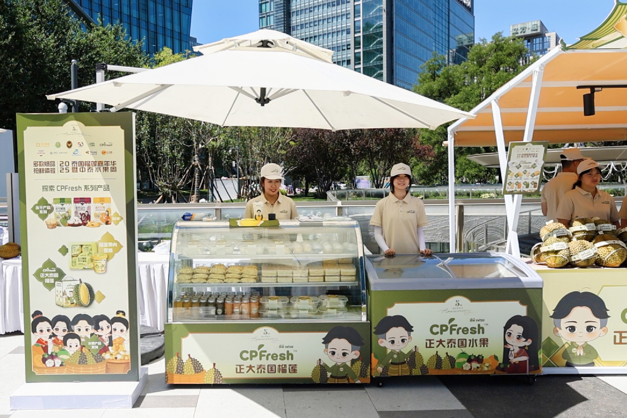 ▲CPFresh正大泰国水果五周年活动展示以及品牌周边。